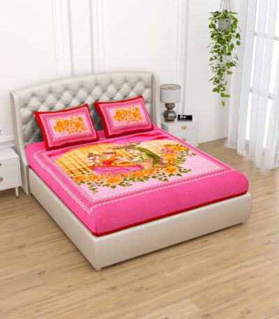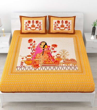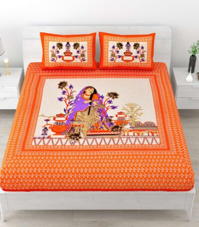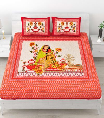 Rajasthani-Stylish Printed Cotton Double Bedsheet With Two Matching Pillow Covers