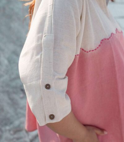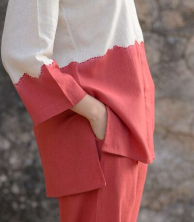 Women’s Cotton Tie Dye Print Two-Piece Lounge Set Tunic with Wide-Leg Pants, Resort Wear ( Pink and White )