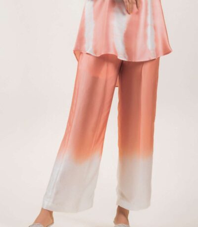 Women’s Cotton Tie Dye Print Two-Piece Lounge Set Button-Down Tunic with Palazzo Pants Resort Wear ( Peach )
