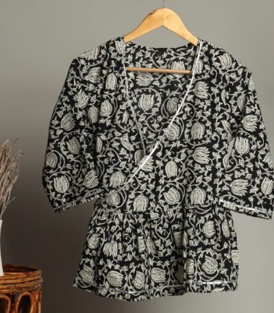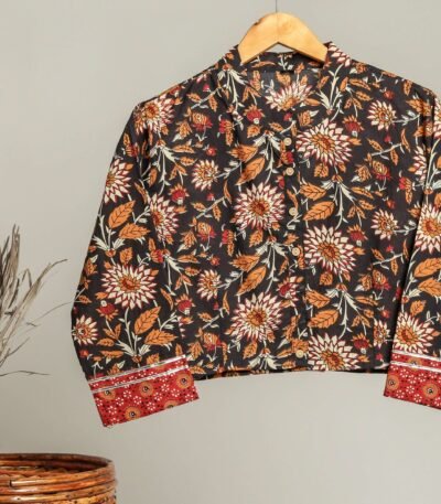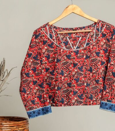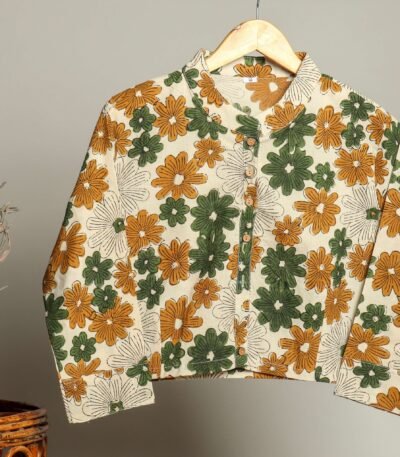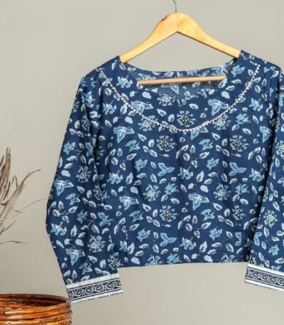 Handmade Block Print Cotton for Women ? Ethnic Floral Printed Top with Long Sleeves