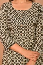 Black & Beige Geometric Printed A-Line Midi Dress with 3/4 Sleeves & Button Detailing ? Elegant Everyday Wear