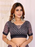 Elevate your ethnic wardrobe with the Black & Maroon Geometric Printed Chanderi Saree, crafted from premium Chanderi fabric. The rich black base is adorned with a striking combination of maroon and white geometric and traditional block prints, offering a sophisticated yet contemporary appeal.