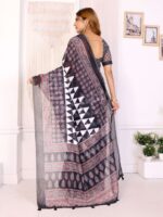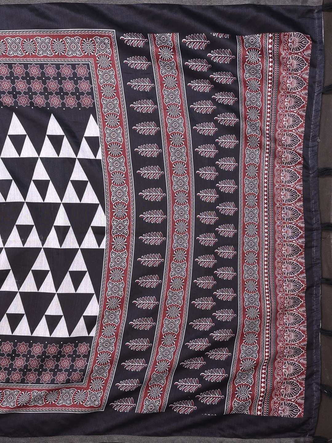 Black & Maroon Chanderi Saree with Geometric & Block Prints ? Festive & Elegant