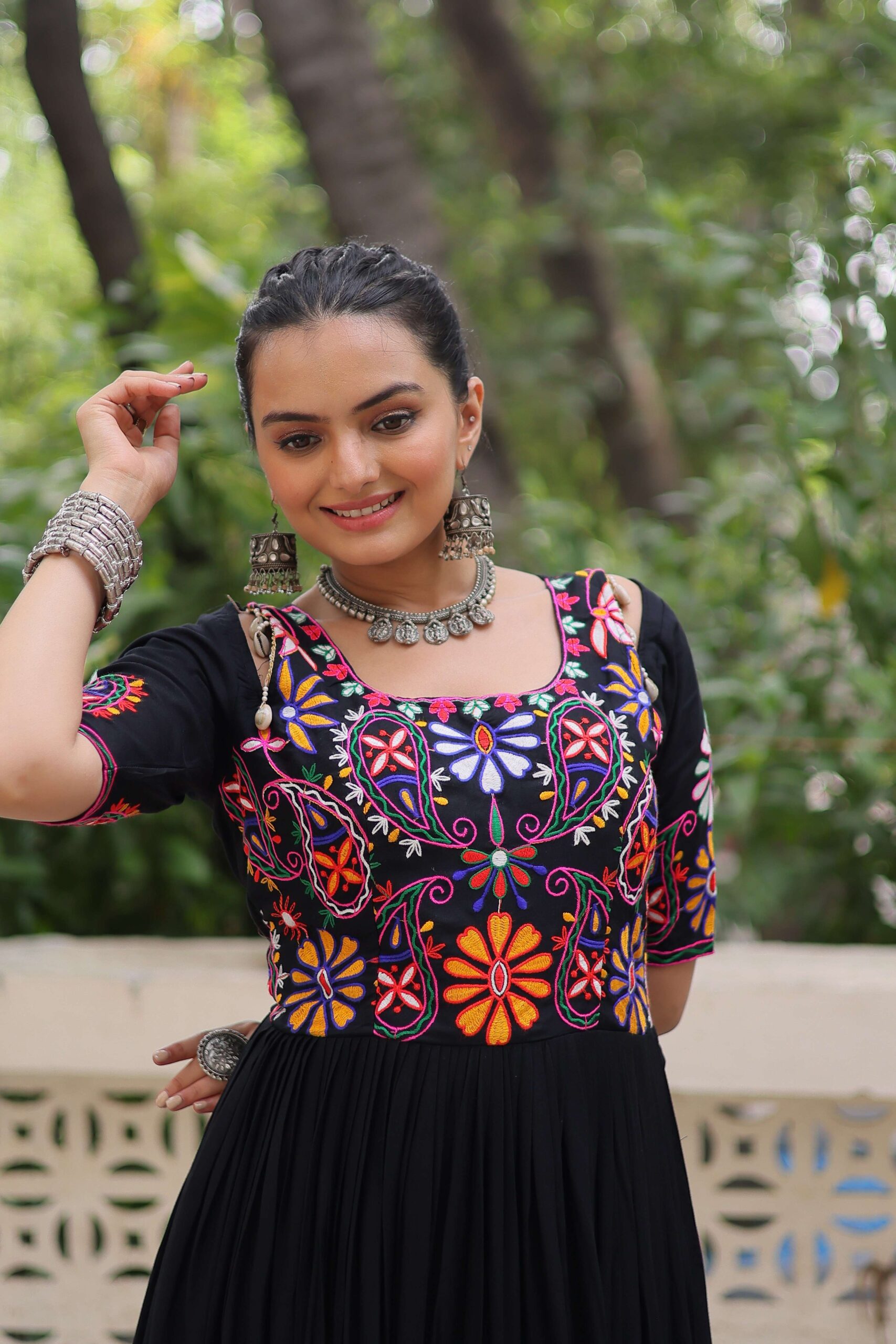 Perfect for Navratri, Garba, festive events, or cultural gatherings, this gown blends traditional embroidery with modern elegance?making it a must-have for your ethnic wardrobe.