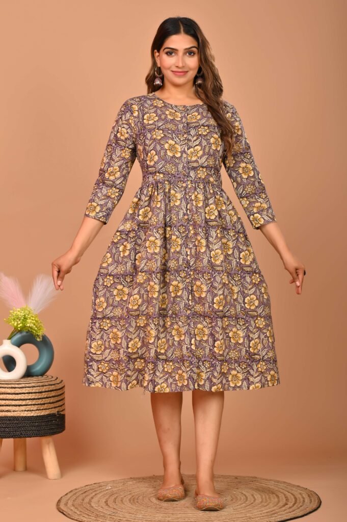 Effortless elegance with our Floral Printed A-Line Midi Dress, designed to keep you stylish and comfortable all day long. Crafted from premium breathable fabric, this dress features a timeless A-line silhouette that flatters every body type. The vibrant floral print on a classic black base adds a touch of charm, making it perfect for both daytime outings and evening gatherings.