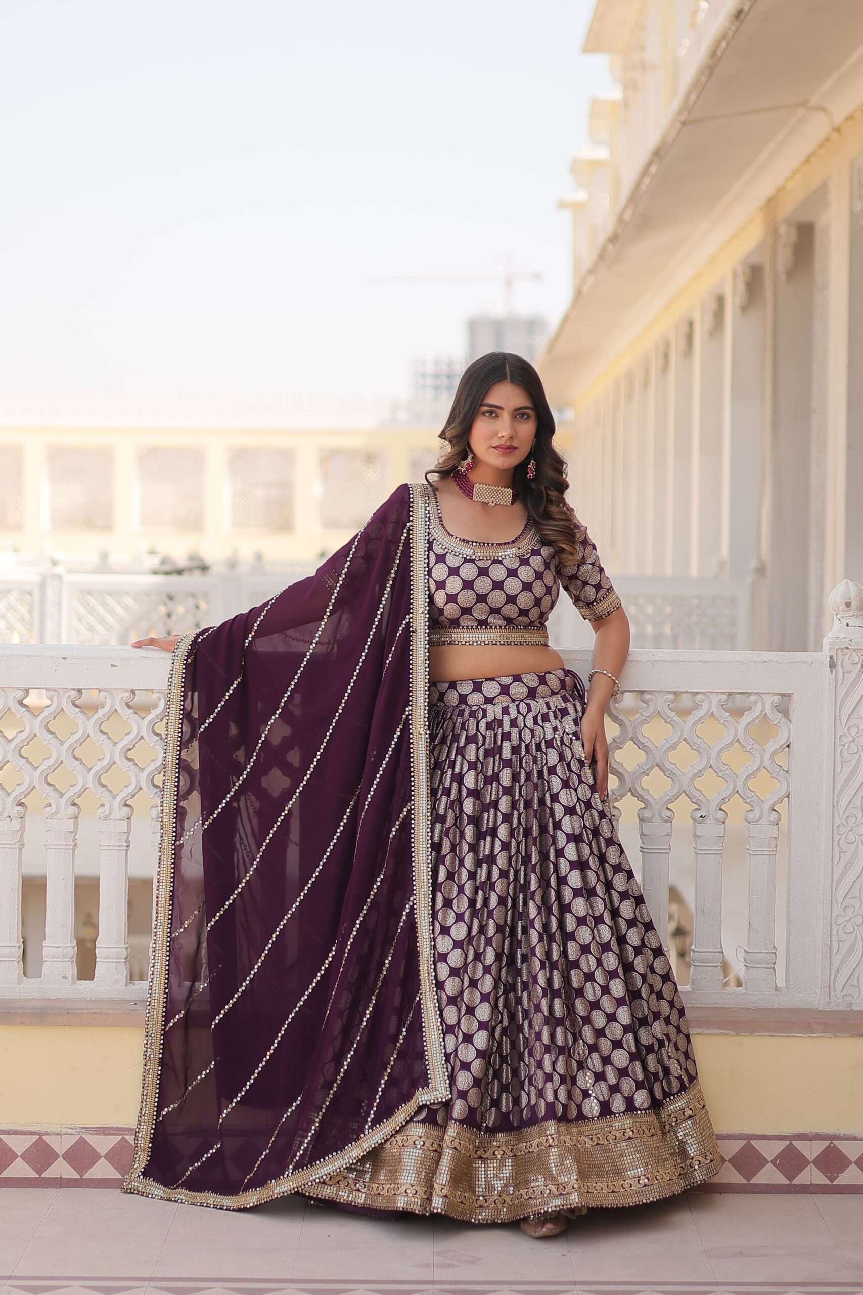 Designer Dyable Viscose Jacquard Lehenga Choli with Sequins Dupatta