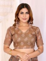 Wrap yourself in sophistication with the Elegant Coffee Brown Chanderi Saree, crafted from premium Chanderi fabric. The earthy coffee brown base is enhanced with multicolor digital floral and ethnic patterns, creating a perfect harmony of tradition and contemporary style.