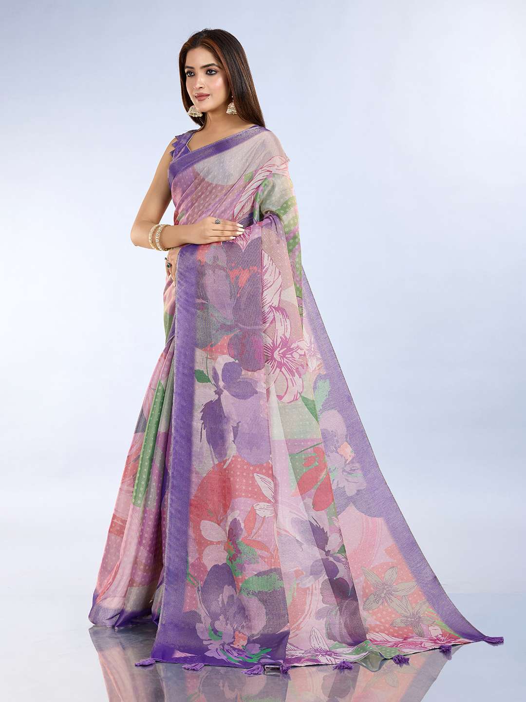 Make a striking style statement with this exquisite Teal Green and Mauve Pink Linen Saree, a perfect fusion of traditional motifs and contemporary design. Crafted from a high-quality, lightweight linen fabric, this saree provides a comfortable drape and a chic, earthy aesthetic.