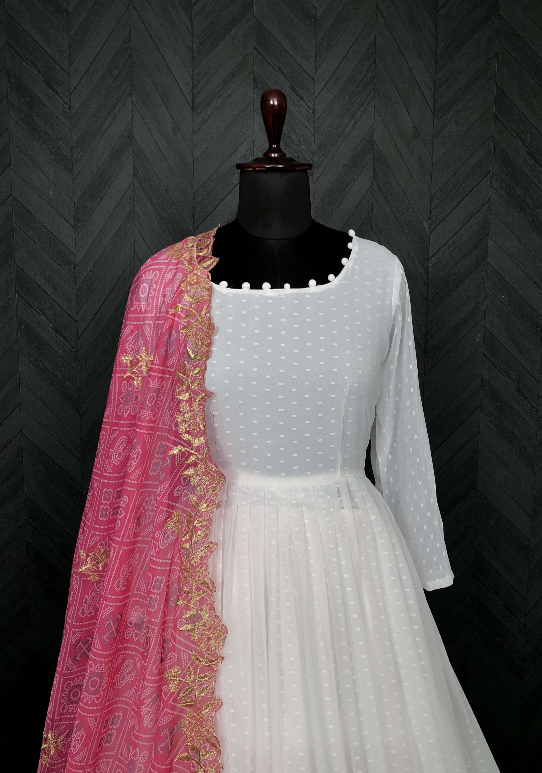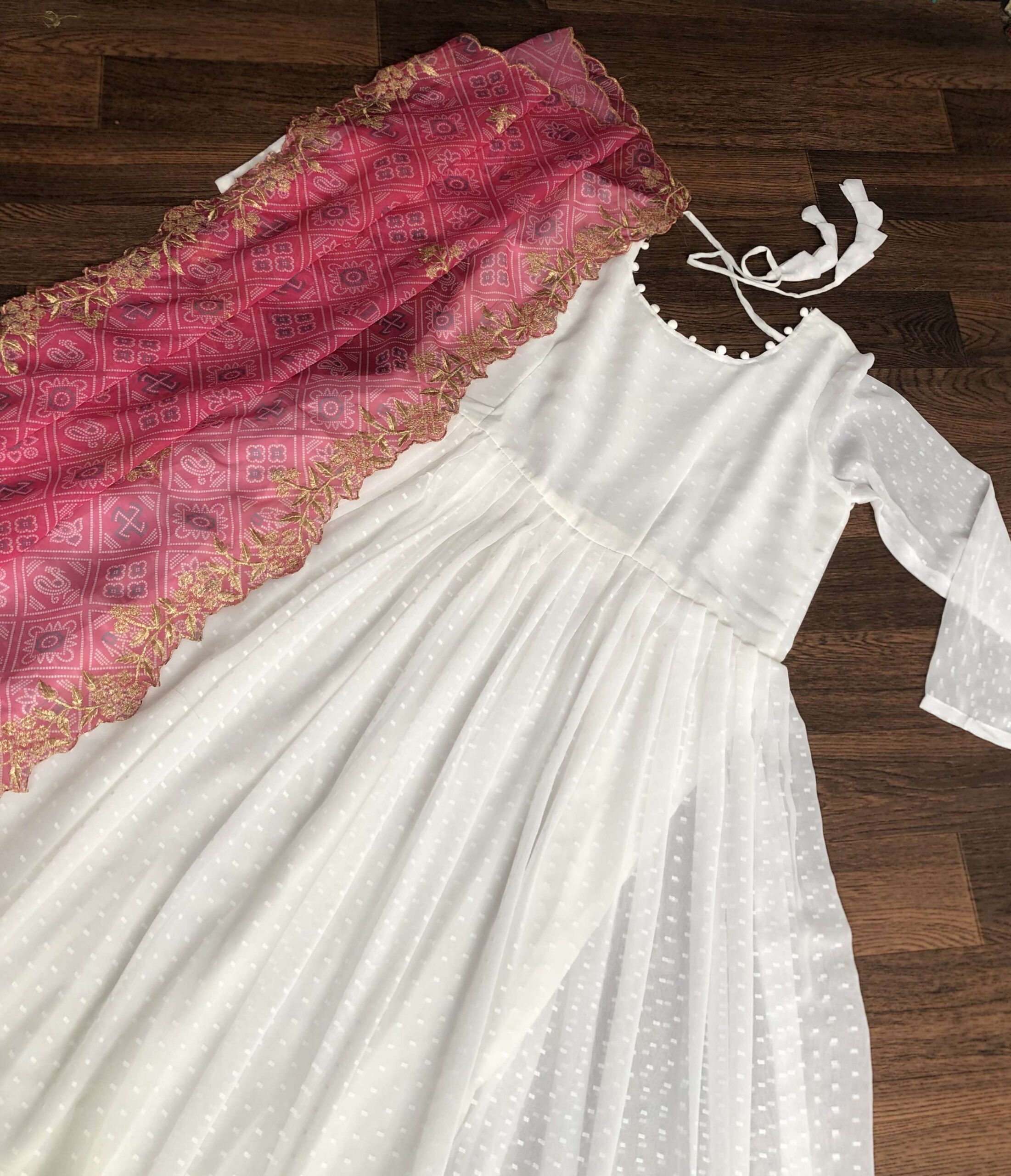 Elegant White And Pink Georgette Gown with Soft Organza Dupatta ? Premium Designer Ready-to-Wear Set