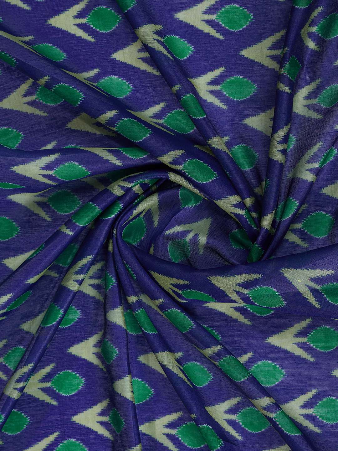 Add a vibrant touch to your wardrobe with the Green & Blue Ikat Printed Chanderi Saree. Featuring a refreshing green base adorned with bold blue Ikat-inspired motifs, this saree beautifully blends tradition with contemporary design.