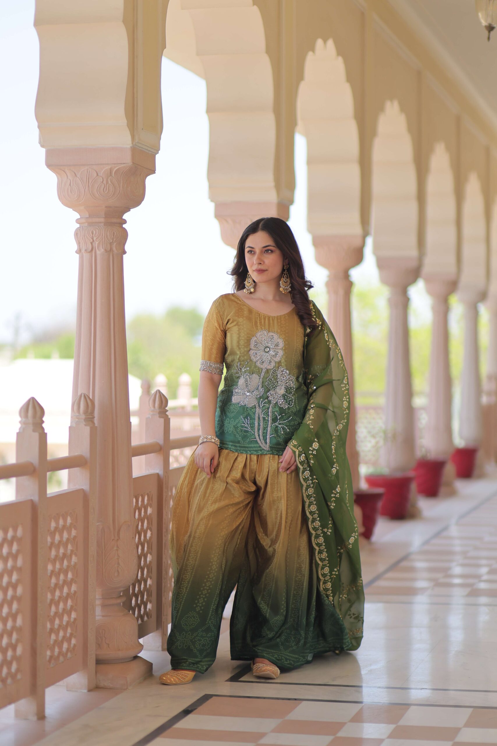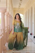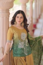 Step into elegance with this exquisite designer Top-Sharara-Dupatta set, perfect for festive occasions, weddings, and celebrations.