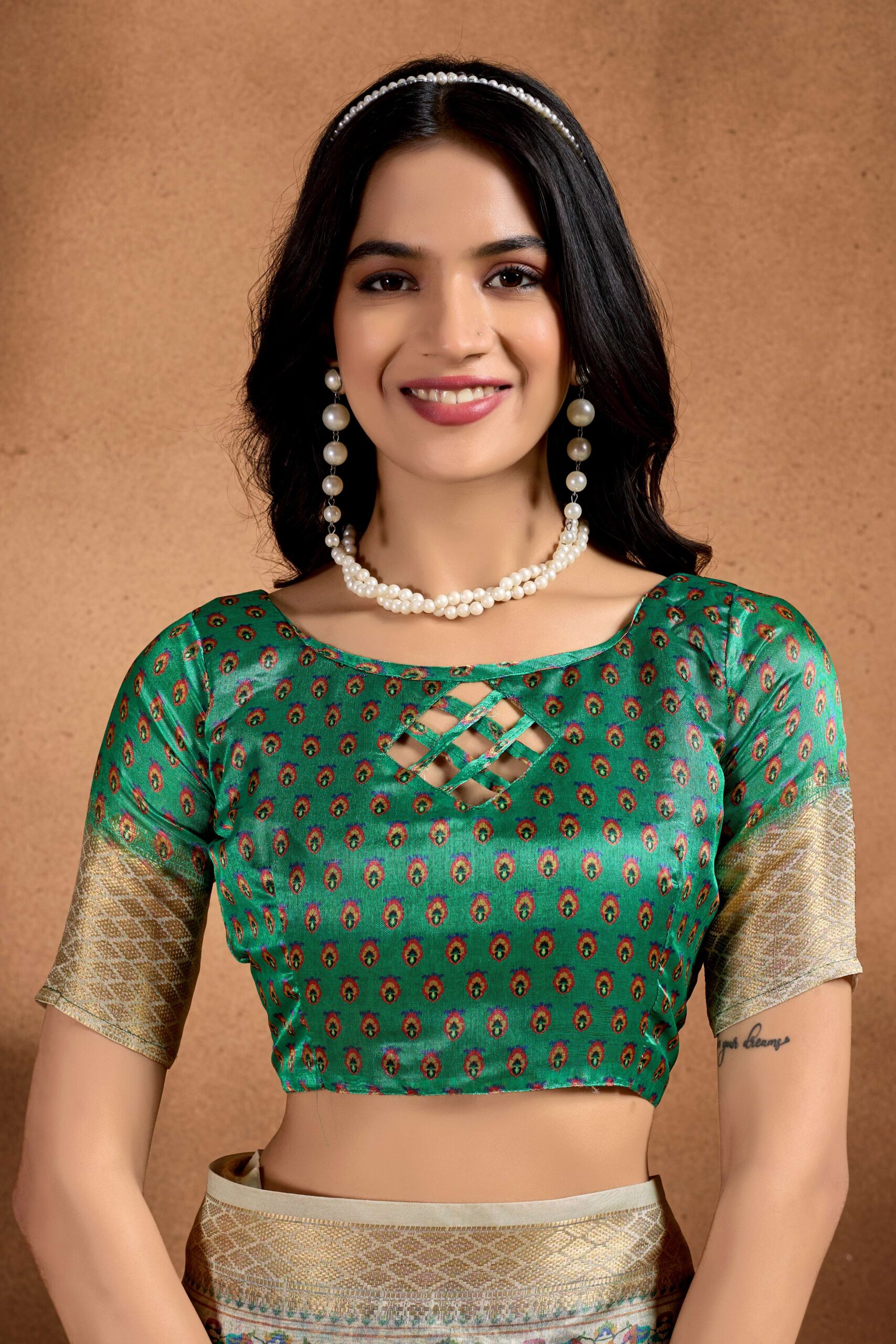 This elegant green soft silk blend saree features a mesmerizing combination of paisley and floral zari weave, enriched with multicolor accents for a luxurious appeal. The lustrous fabric and intricate detailing make it a timeless addition to any ethnic wardrobe.