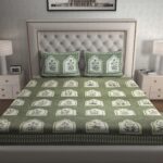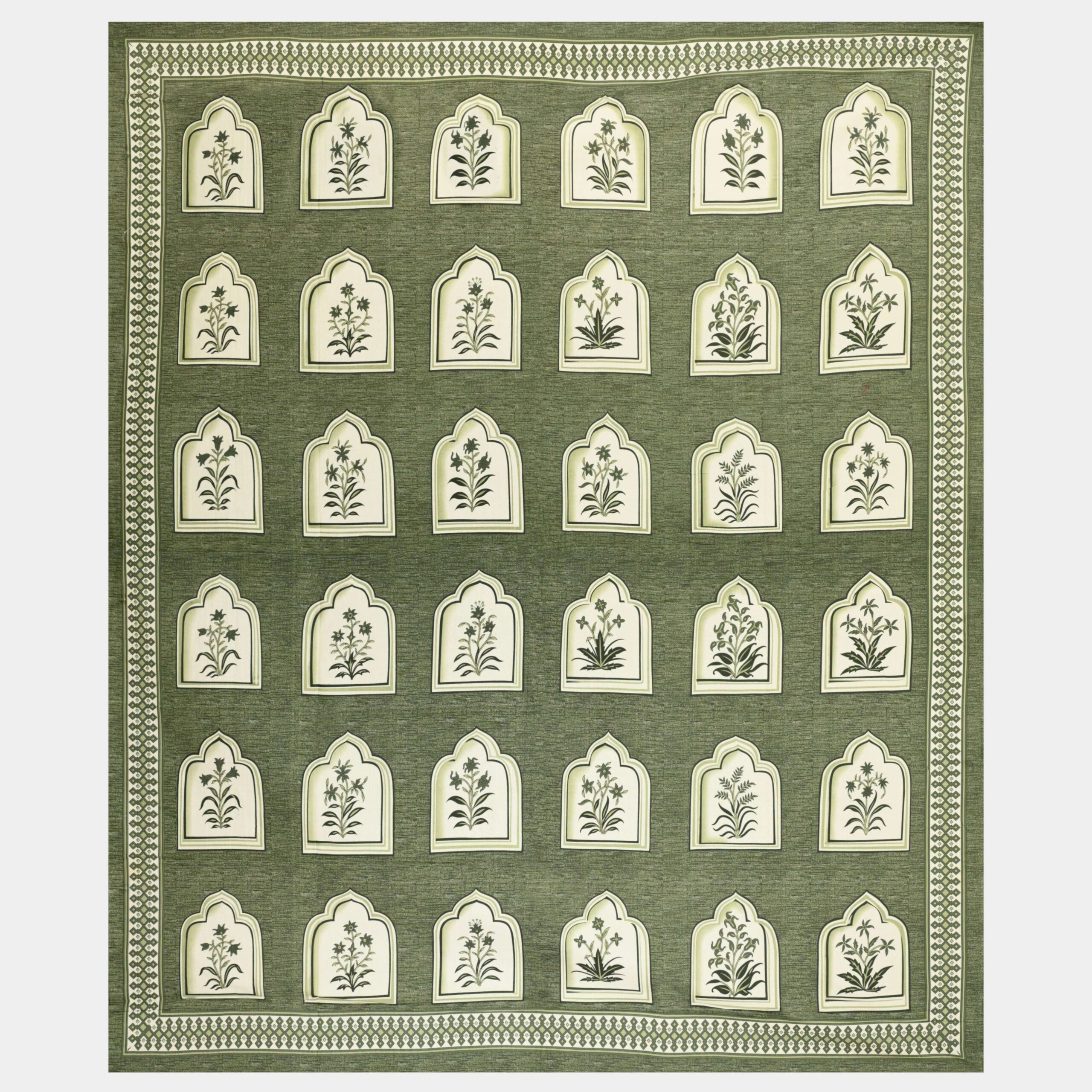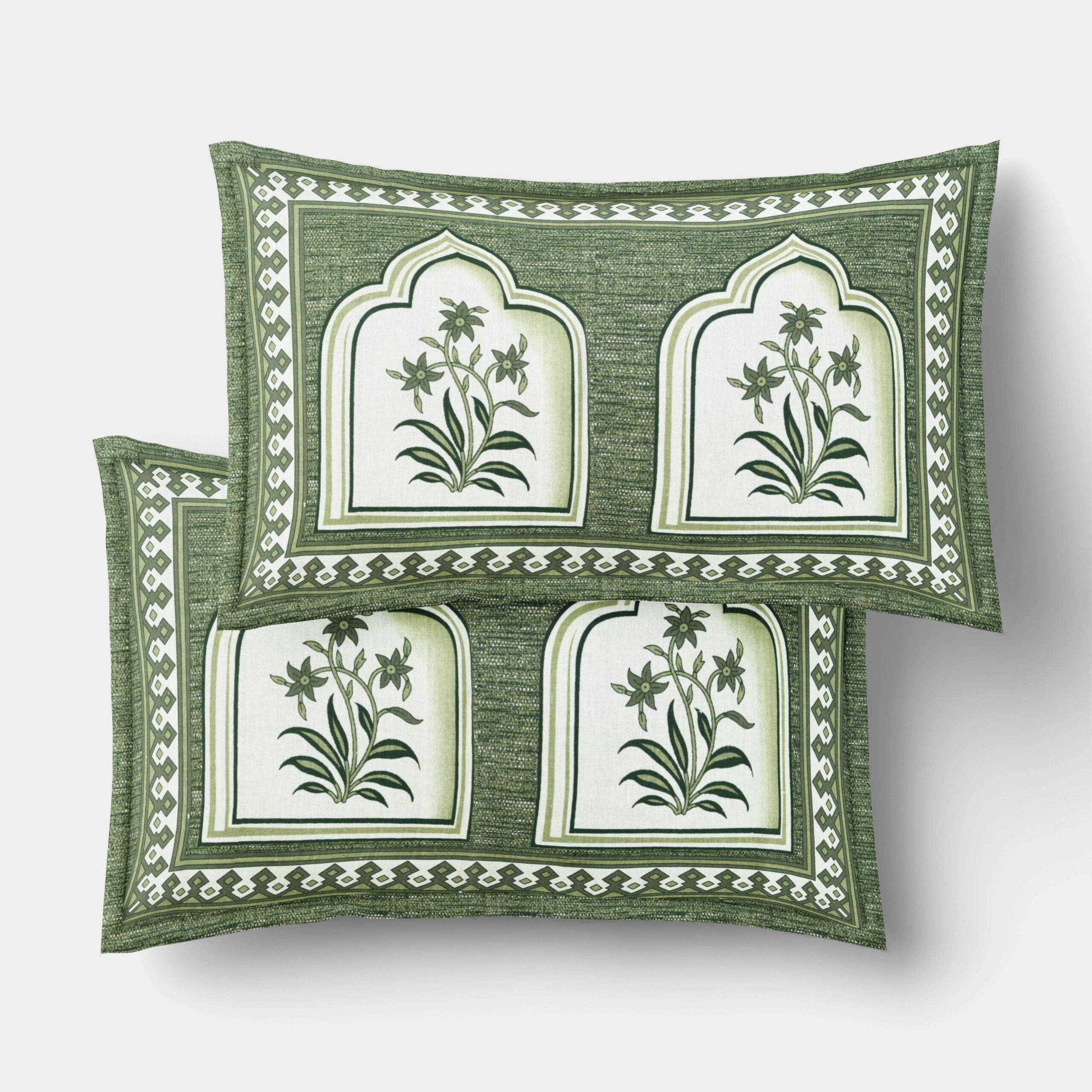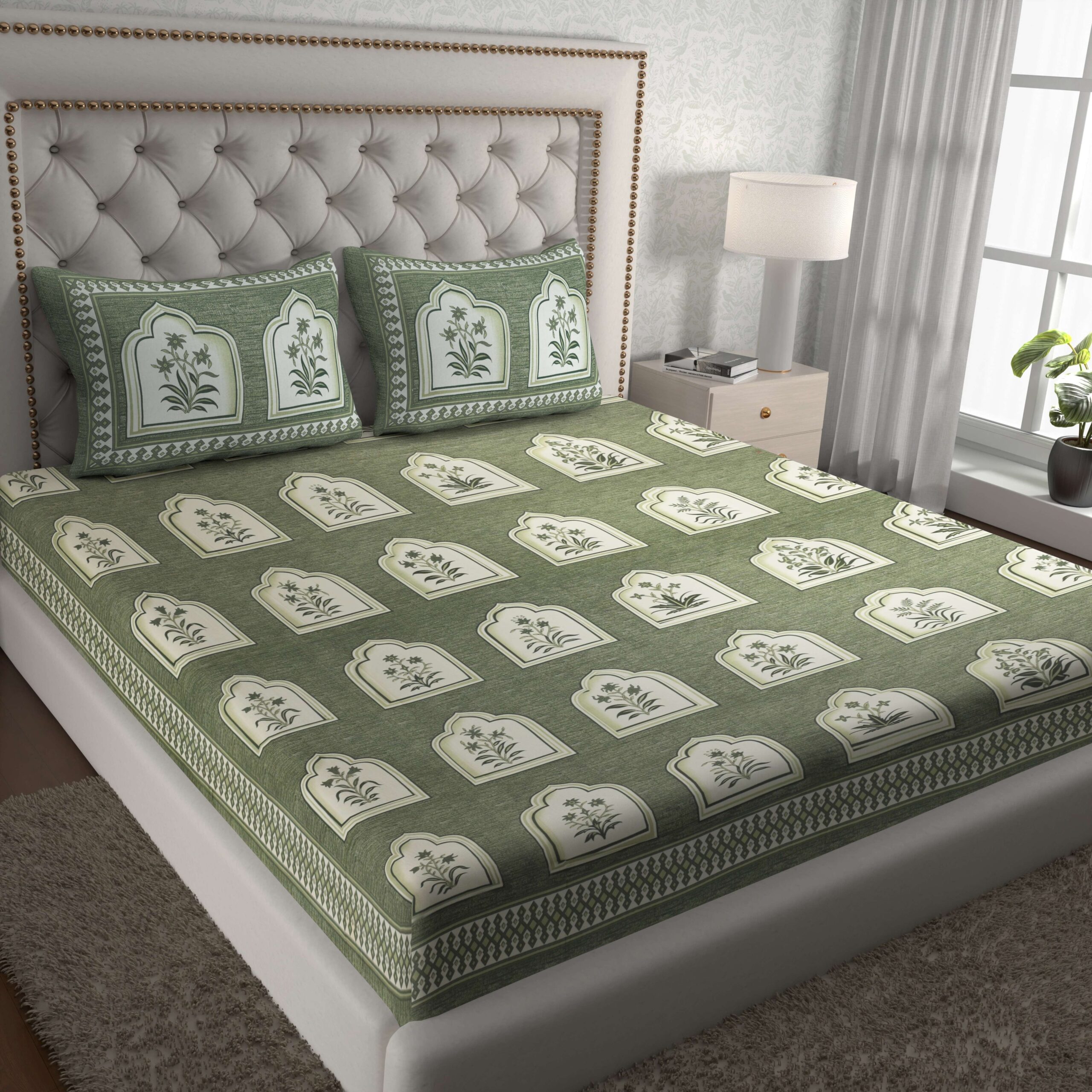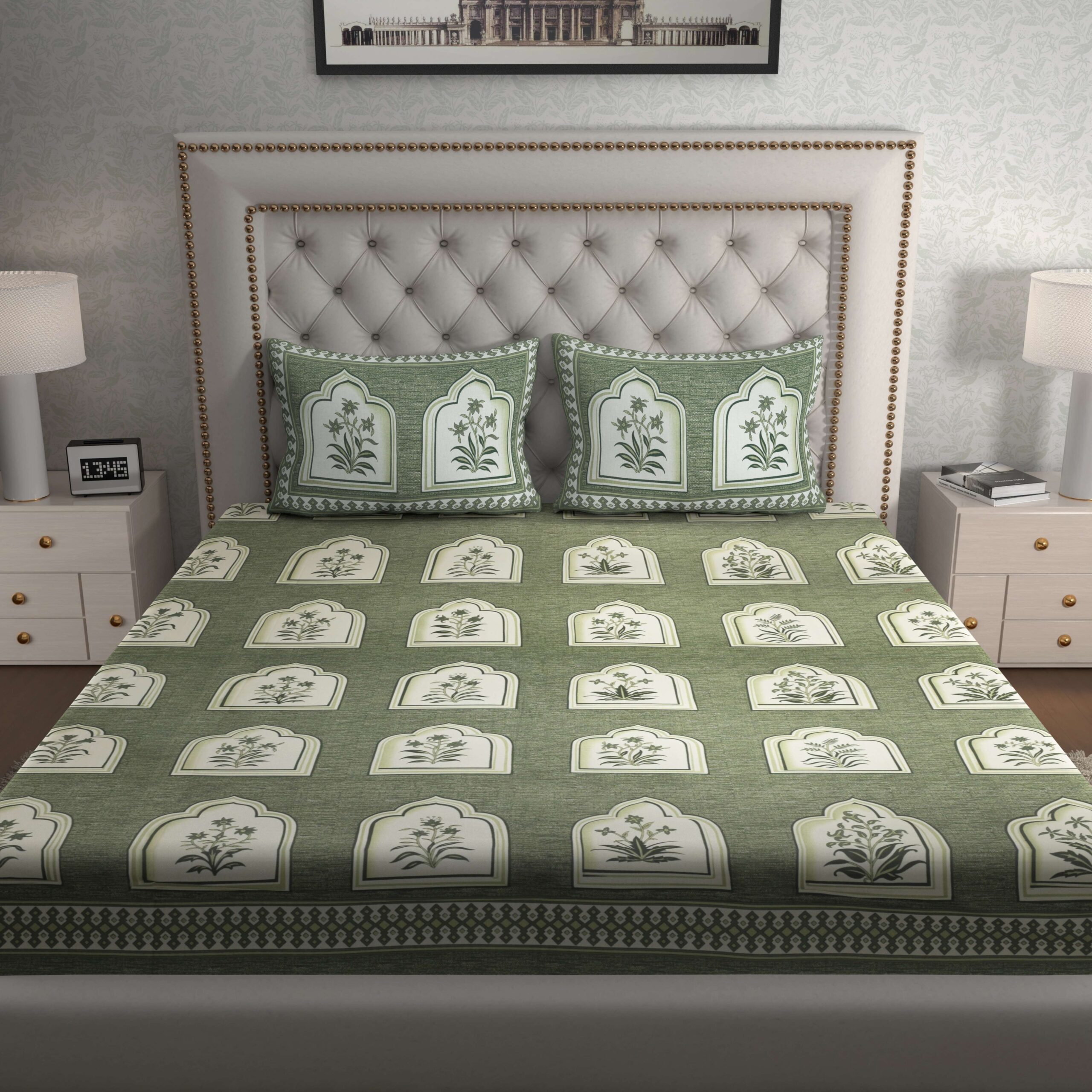 Greenish Jaipuri-Style Floral Printed Double Bedsheet With Two Matching Pillow Covers