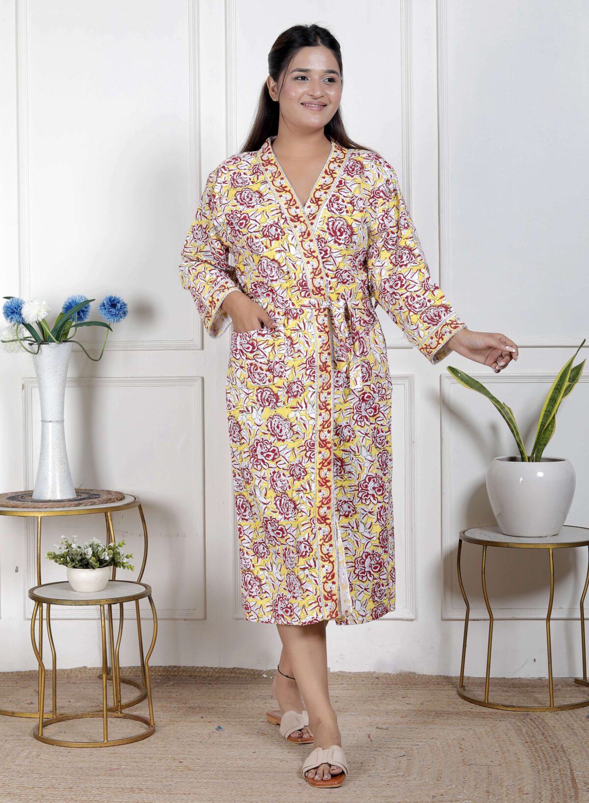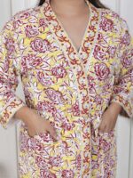 Handcrafted Cotton Block Printed Long Robe | Comfortable Loungewear & Bathrobe for Women