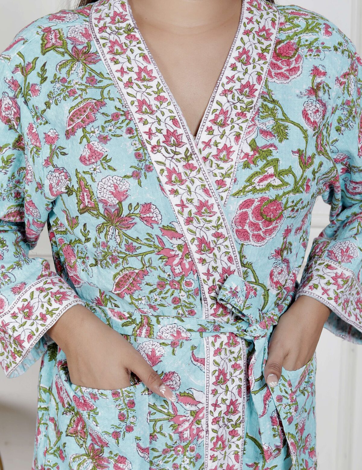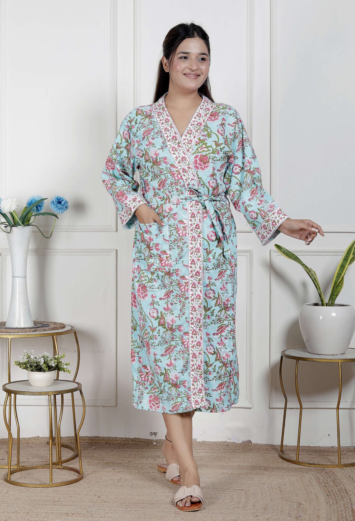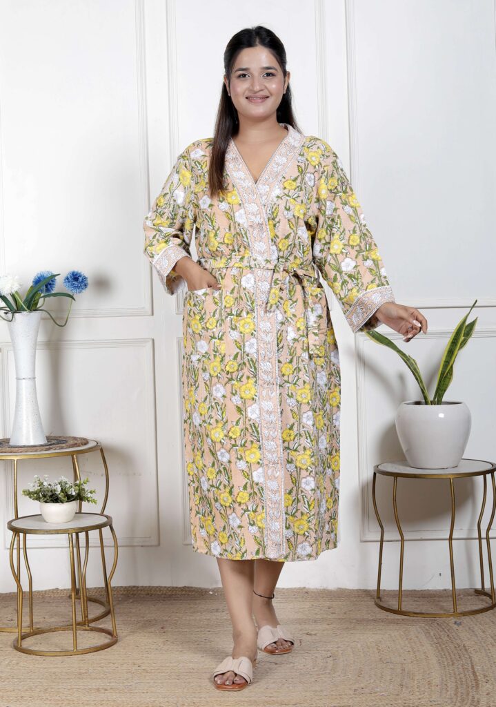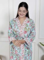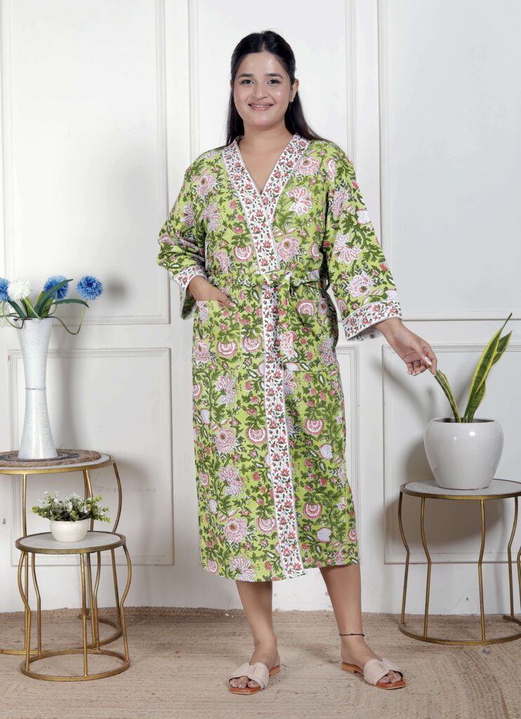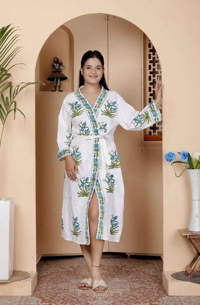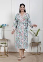 Handcrafted Cotton Block Printed Long Robe | Comfortable Loungewear & Bathrobe for Women
