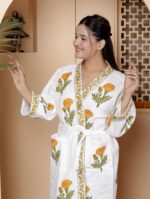Handcrafted Cotton Block Printed Long Robe | Comfortable Loungewear & Bathrobe for Women