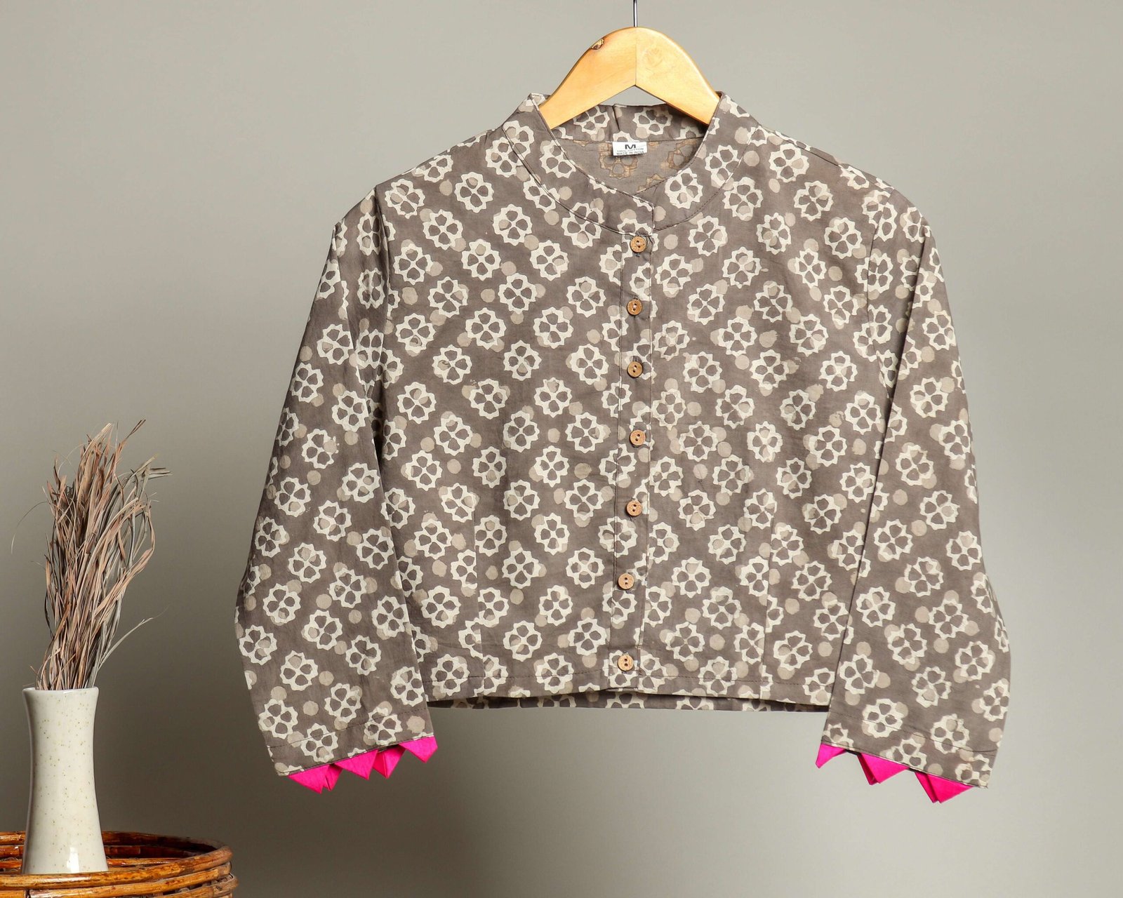 Handmade Block Print Cotton for Women ? Ethnic Floral Printed Top with Long Sleeves
