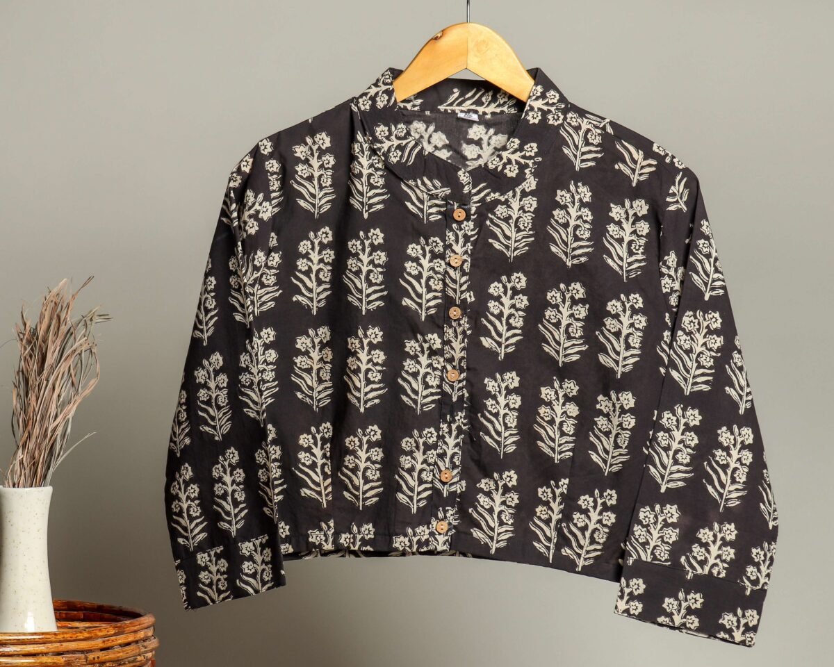 Handmade Block Print Cotton for Women ? Ethnic Floral Printed Top with Long Sleeves