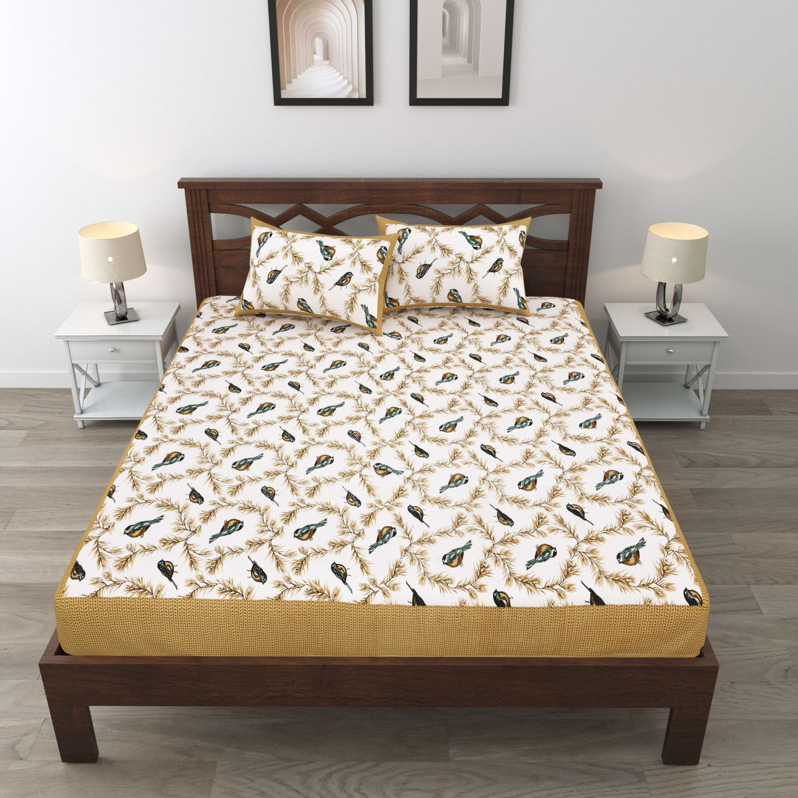Give your bedroom a royal Rajasthani touch with this Jaipuri Cotton Printed Double Bedsheet. Featuring traditional Jaipuri prints, it adds an elegant and vibrant charm to your space. Made from 100% pure cotton fabric, this bedsheet is soft, breathable, and skin-friendly, ensuring ultimate comfort and freshness every day. It comes with two matching pillow covers that perfectly complete the look.