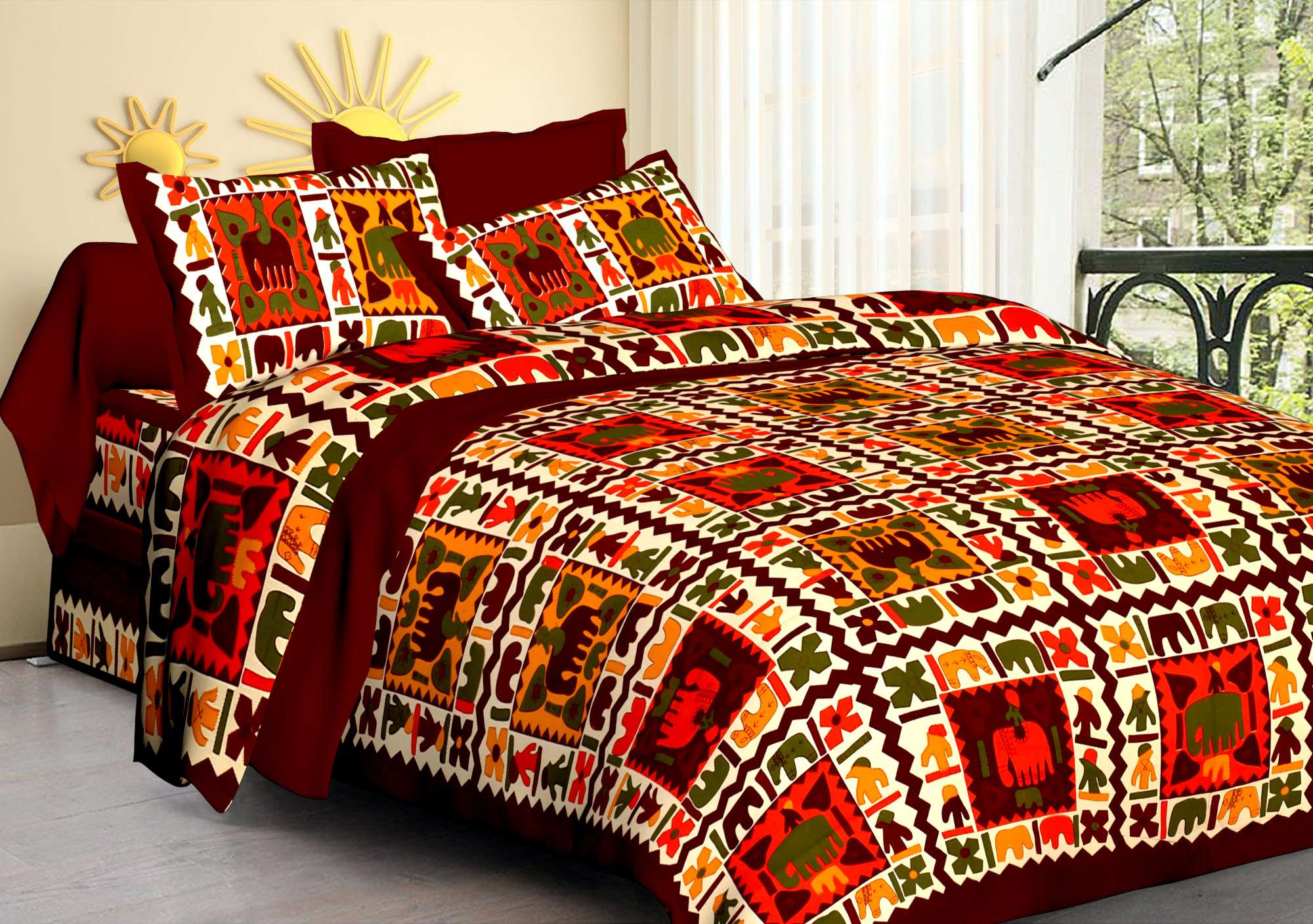 Give your bedroom a royal Rajasthani touch with this Jaipuri Cotton Printed Double Bedsheet. Featuring traditional Jaipuri prints, it adds an elegant and vibrant charm to your space. Made from 100% pure cotton fabric, this bedsheet is soft, breathable, and skin-friendly, ensuring ultimate comfort and freshness every day. It comes with two matching pillow covers that perfectly complete the look.