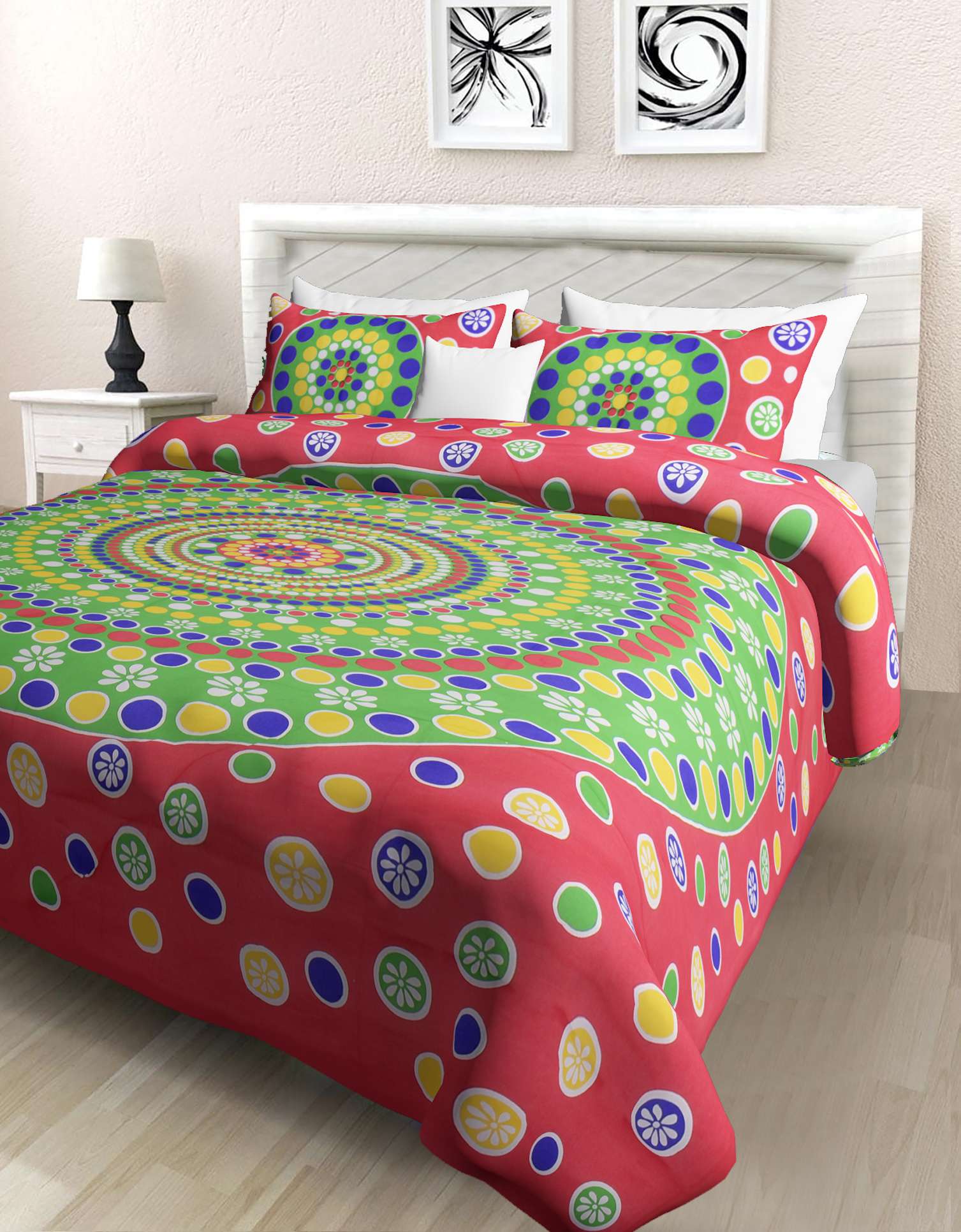 Jaipuri Printed Cotton Double Bedsheet With Two Pillow Covers.
