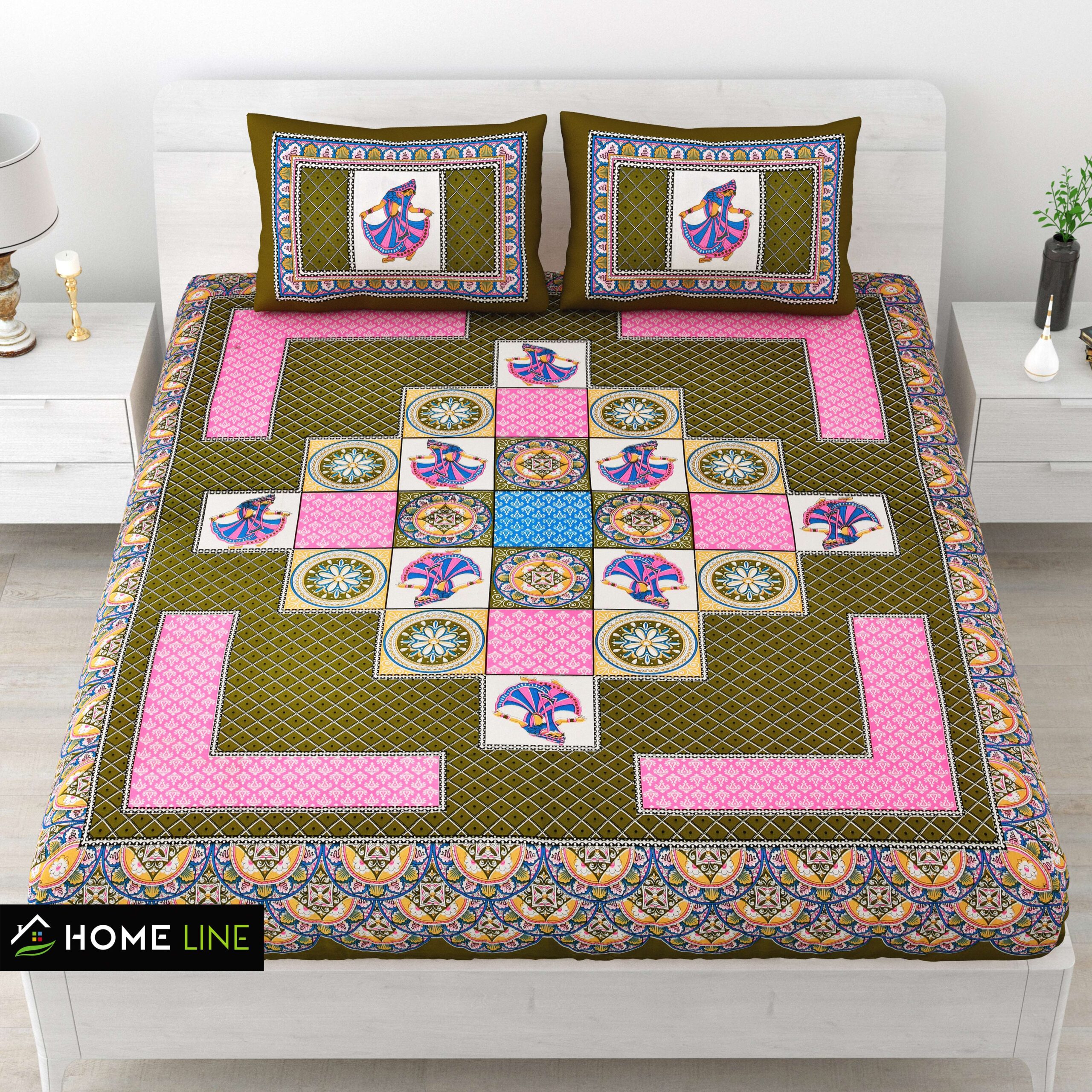 Give your bedroom a royal Rajasthani touch with this Jaipuri Cotton Printed Double Bedsheet. Featuring traditional Jaipuri prints, it adds an elegant and vibrant charm to your space. Made from 100% pure cotton fabric, this bedsheet is soft, breathable, and skin-friendly, ensuring ultimate comfort and freshness every day. It comes with two matching pillow covers that perfectly complete the look.