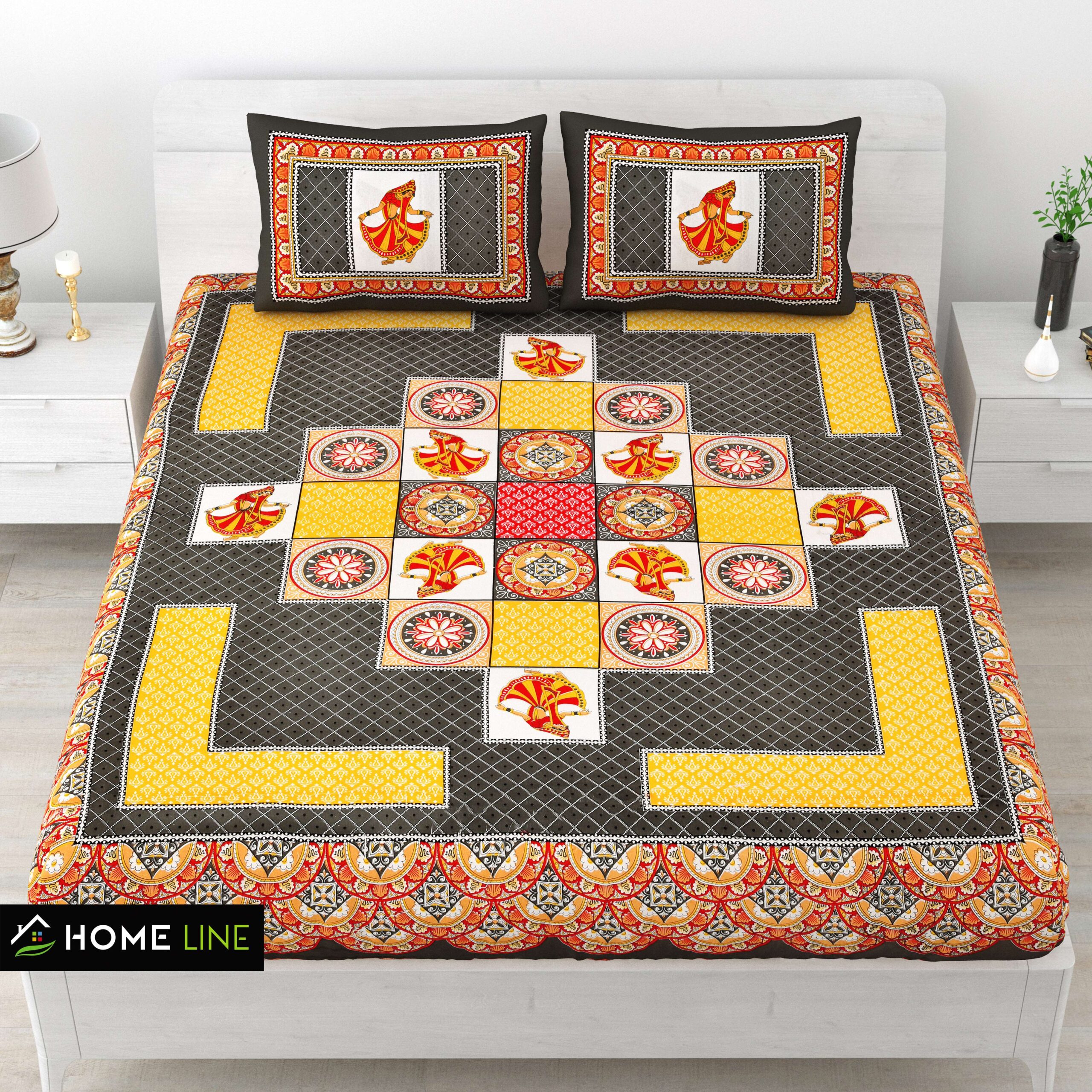 Give your bedroom a royal Rajasthani touch with this Jaipuri Cotton Printed Double Bedsheet. Featuring traditional Jaipuri prints, it adds an elegant and vibrant charm to your space. Made from 100% pure cotton fabric, this bedsheet is soft, breathable, and skin-friendly, ensuring ultimate comfort and freshness every day. It comes with two matching pillow covers that perfectly complete the look.