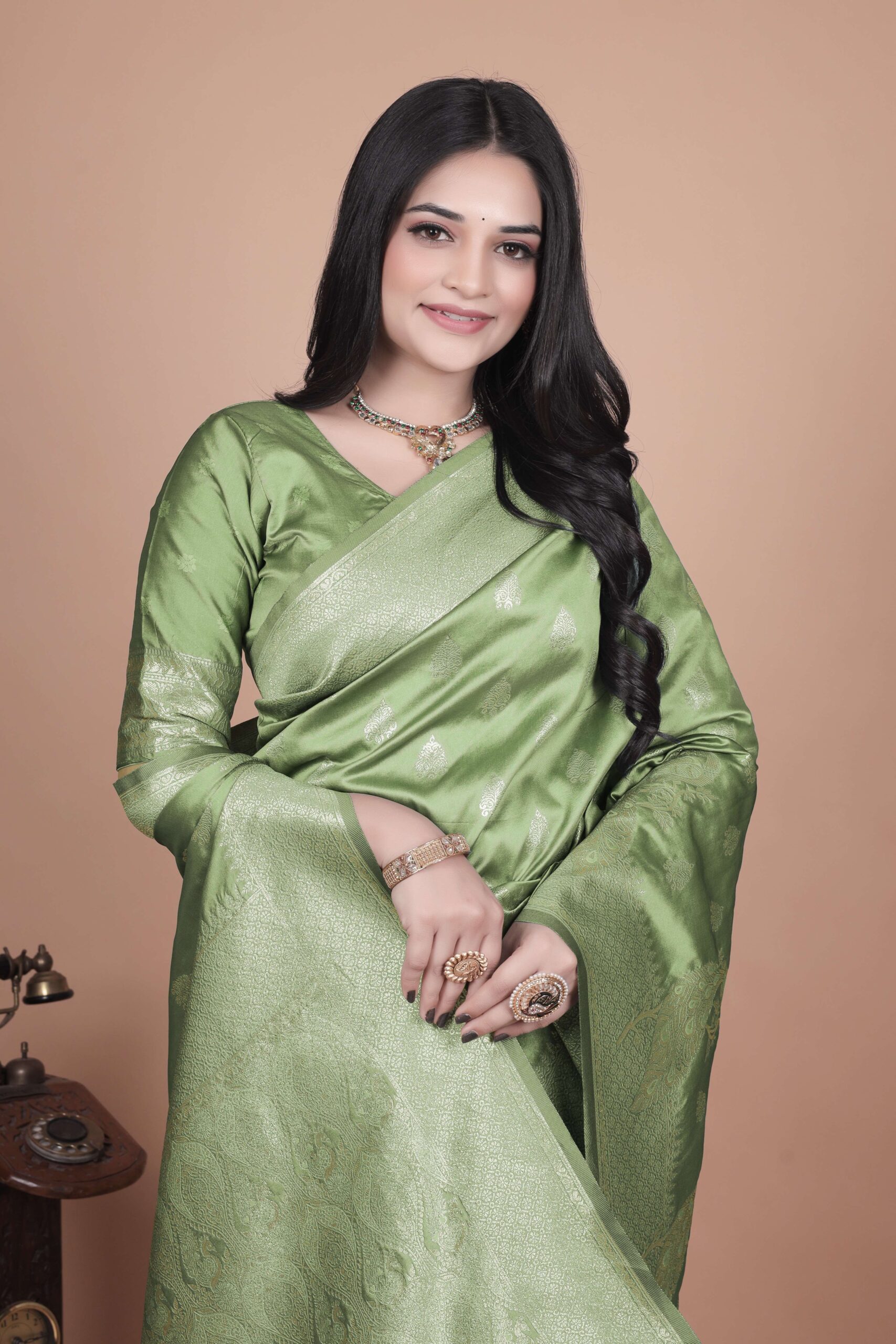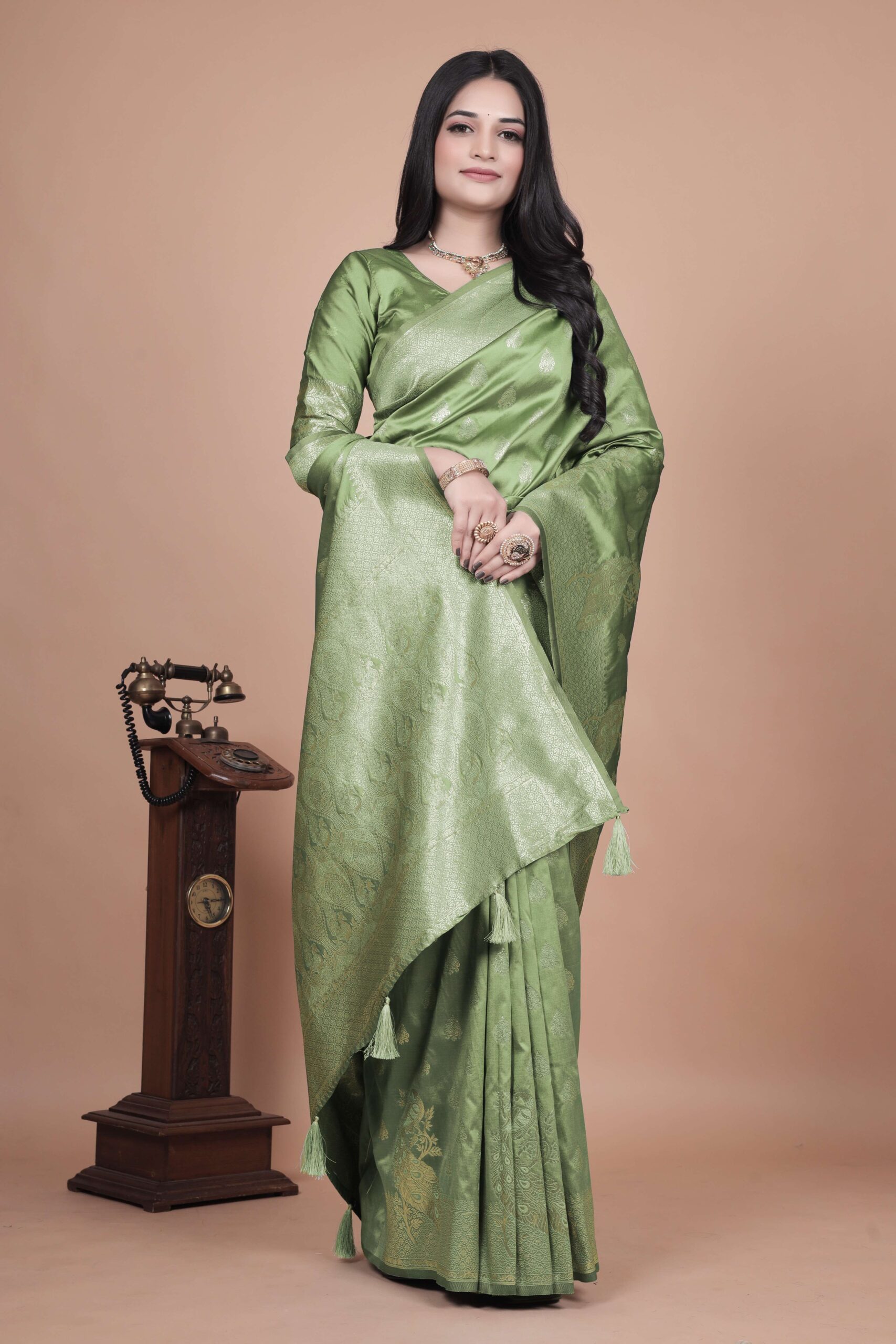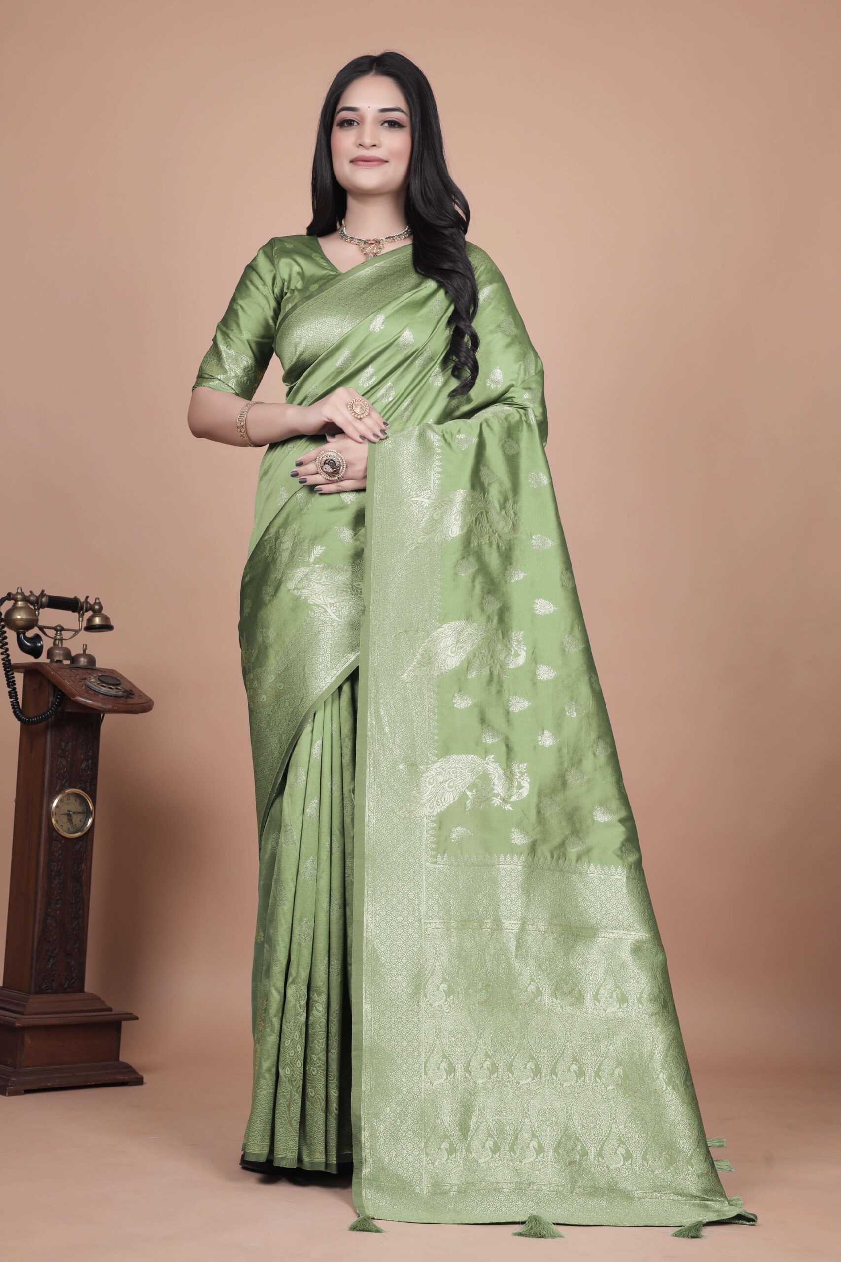 Lime Green Banarasi Silk Saree with Golden Zari & Peacock Motifs | Wedding, Festive & Traditional Wear | Designer Saree