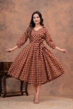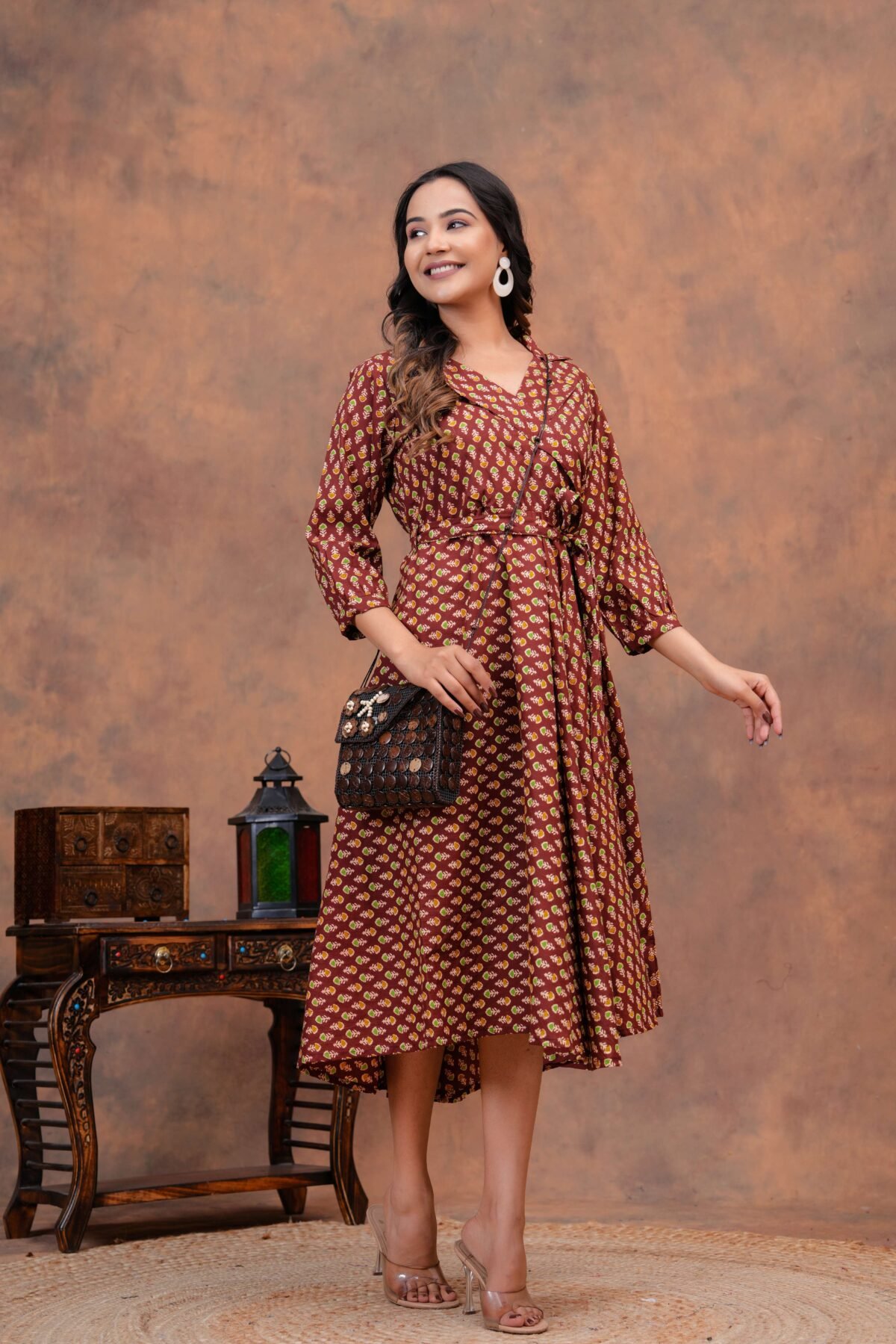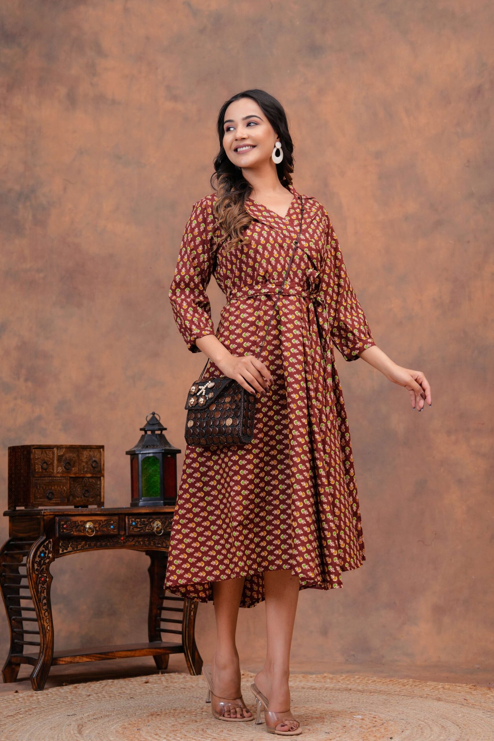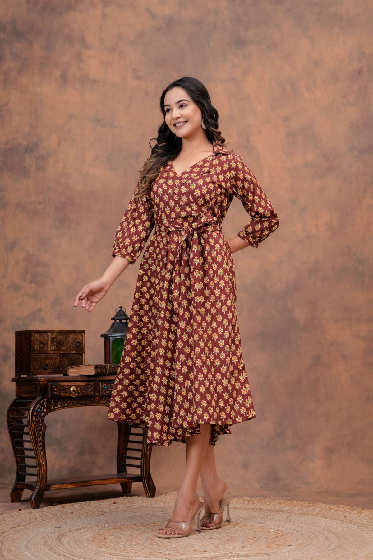 The 3/4th sleeves bring a chic balance of coverage and style, while the midi length ensures a graceful, sophisticated look. Whether you?re heading to brunch, a casual meet-up, or a special celebration, this versatile dress seamlessly transitions from casual wear to party wear with just the right accessories.