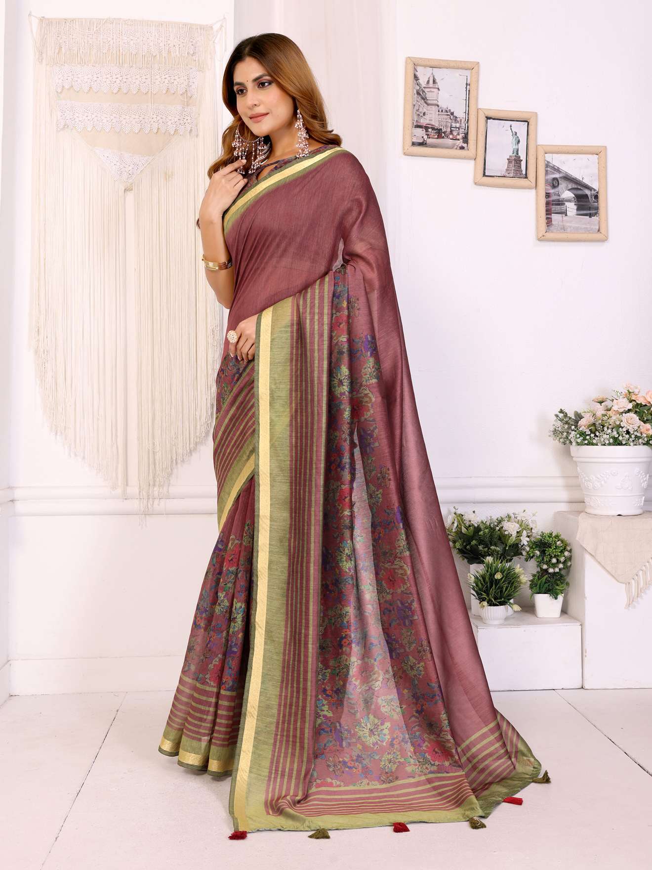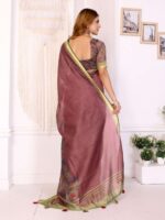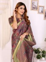Maroon & Olive Floral Printed Chanderi Saree ? Elegant Festive & Traditional Wear