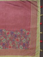 Drape yourself in timeless elegance with the Maroon & Olive Floral Printed Chanderi Saree. Crafted in soft Black Chanderi fabric, this saree features a rich maroon base adorned with floral digital prints and striped detailing, creating the perfect blend of sophistication and tradition.