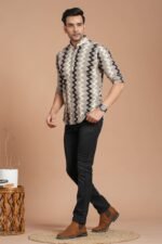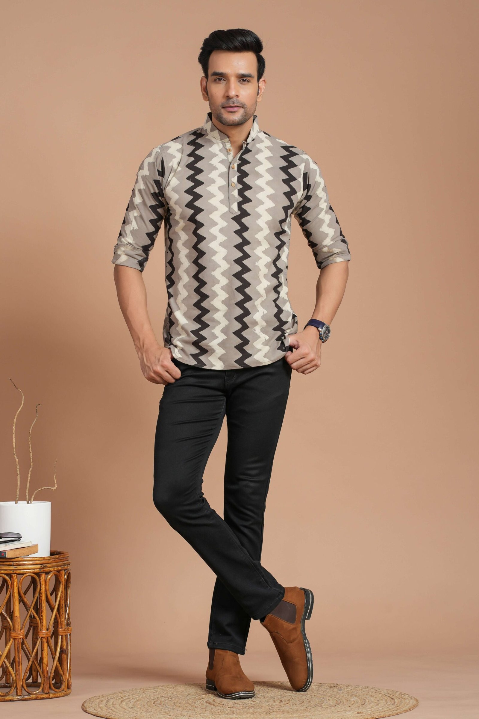 Men’s Cotton Grey Zigzag Printed Kurta ? Casual & Festive Daily Wear