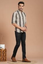 ethnic wardrobe with this stylish Men?s Printed Cotton Kurta. Designed with a modern touch, this kurta features a striking, perfect dress festive occasions print that blends tradition with contemporary fashion. Made from soft and breathable cotton fabric, it ensures comfort and ease of movement throughout the day.