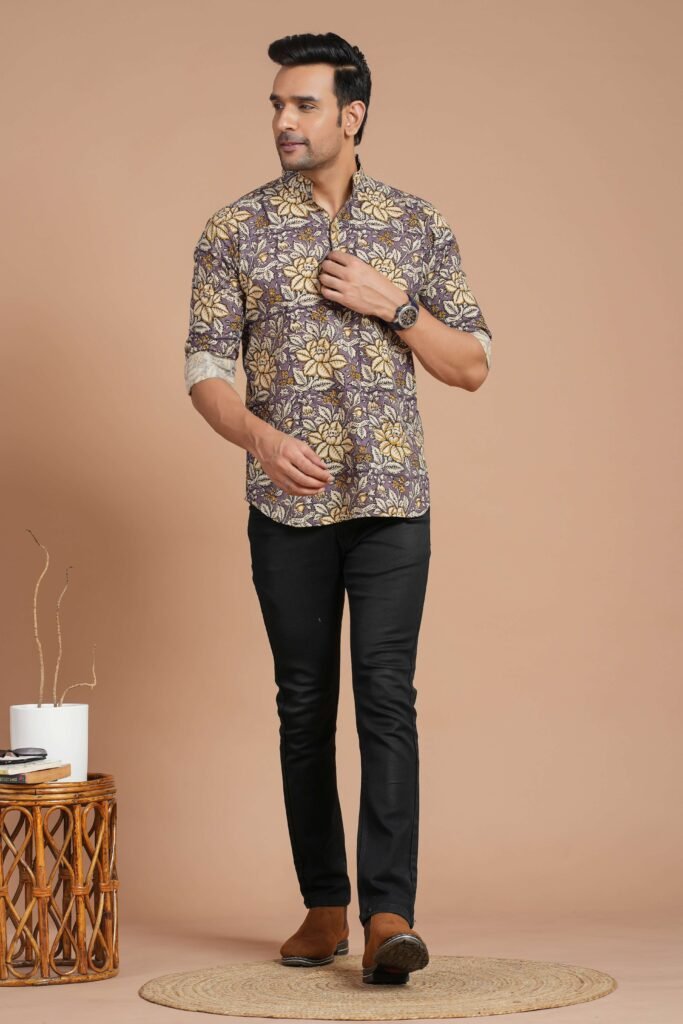 Perfect for festive occasions, casual gatherings, or cultural events, this kurta can be paired effortlessly with black trousers, jeans, or churidar pants. The mandarin collar and buttoned placket add a refined finish, while the rolled-up sleeves offer a relaxed yet sophisticated look.
