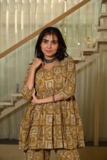 Green floral print cotton co-ord set for women, designed with a playful peplum-style kurta and coordinating straight-fit pants. Crafted from soft and breathable cotton, this set ensures all-day comfort while keeping you effortlessly stylish. The vibrant floral motifs add a refreshing touch, making it ideal for brunches, festive occasions, or relaxed home gatherings. Pair it with ethnic jewelry and flats for a traditional vibe, or style it with minimal accessories for a modern casual look.