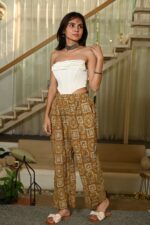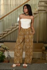 mustard yellow cotton pants for women. Designed with traditional block-inspired prints, these pants bring a boho-chic vibe to everyday fashion. The soft cotton fabric ensures breathability, while the elastic waist and relaxed fit provide all-day comfort. With functional side pockets, they?re perfect for lounging, college, travel, or casual outings. Pair them with a crop top, kurti, or tunic for a versatile look.