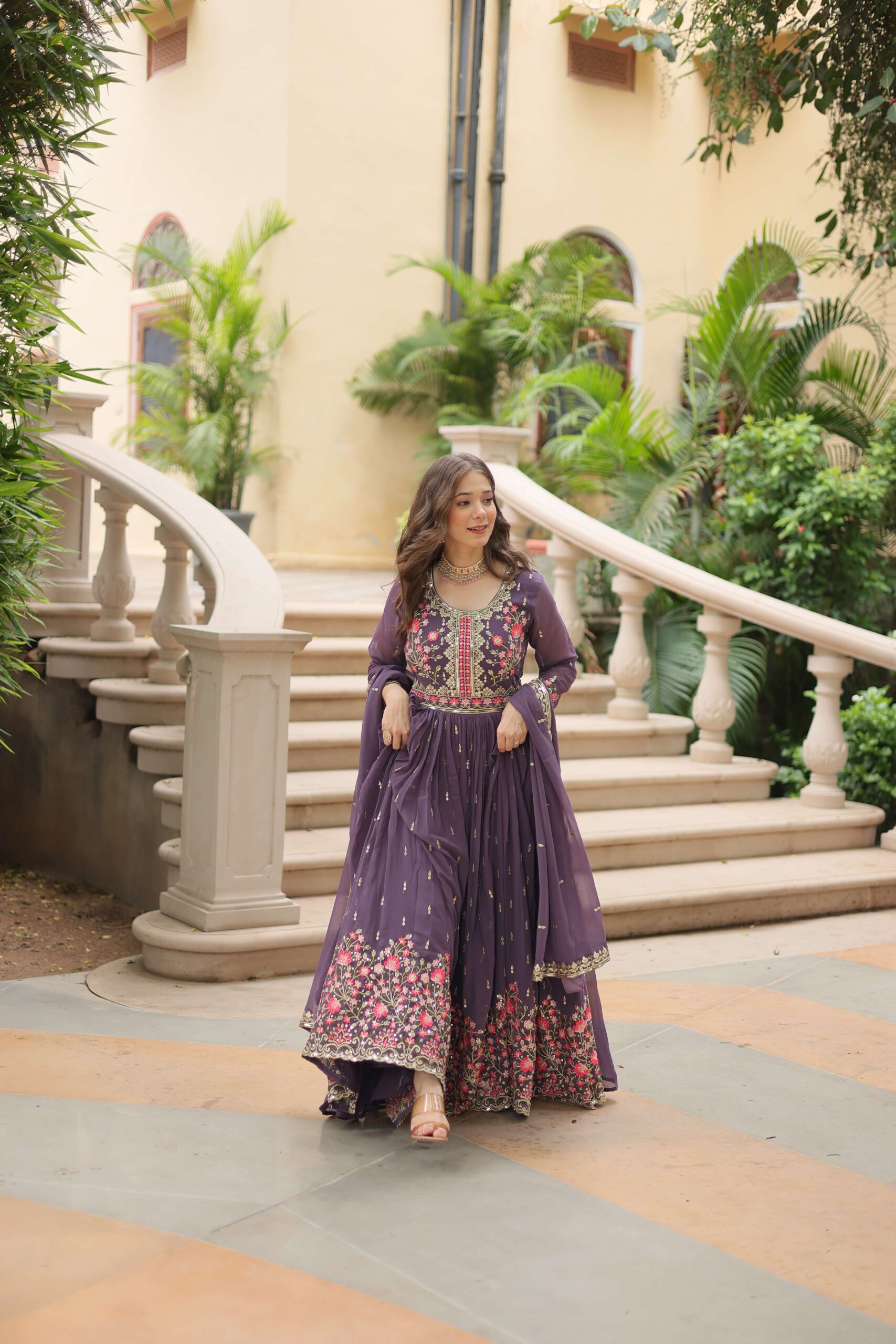 Step into celebrations with elegance in this premium designer ready-made set. The kurti is crafted from luxurious Faux Georgette and adorned with rich sequins embroidery, offering a glamorous and festive look. Its round neckline, full sleeves, and 3-meter flair provide both style and comfort, while the full-length cotton lining ensures a smooth and breathable fit.