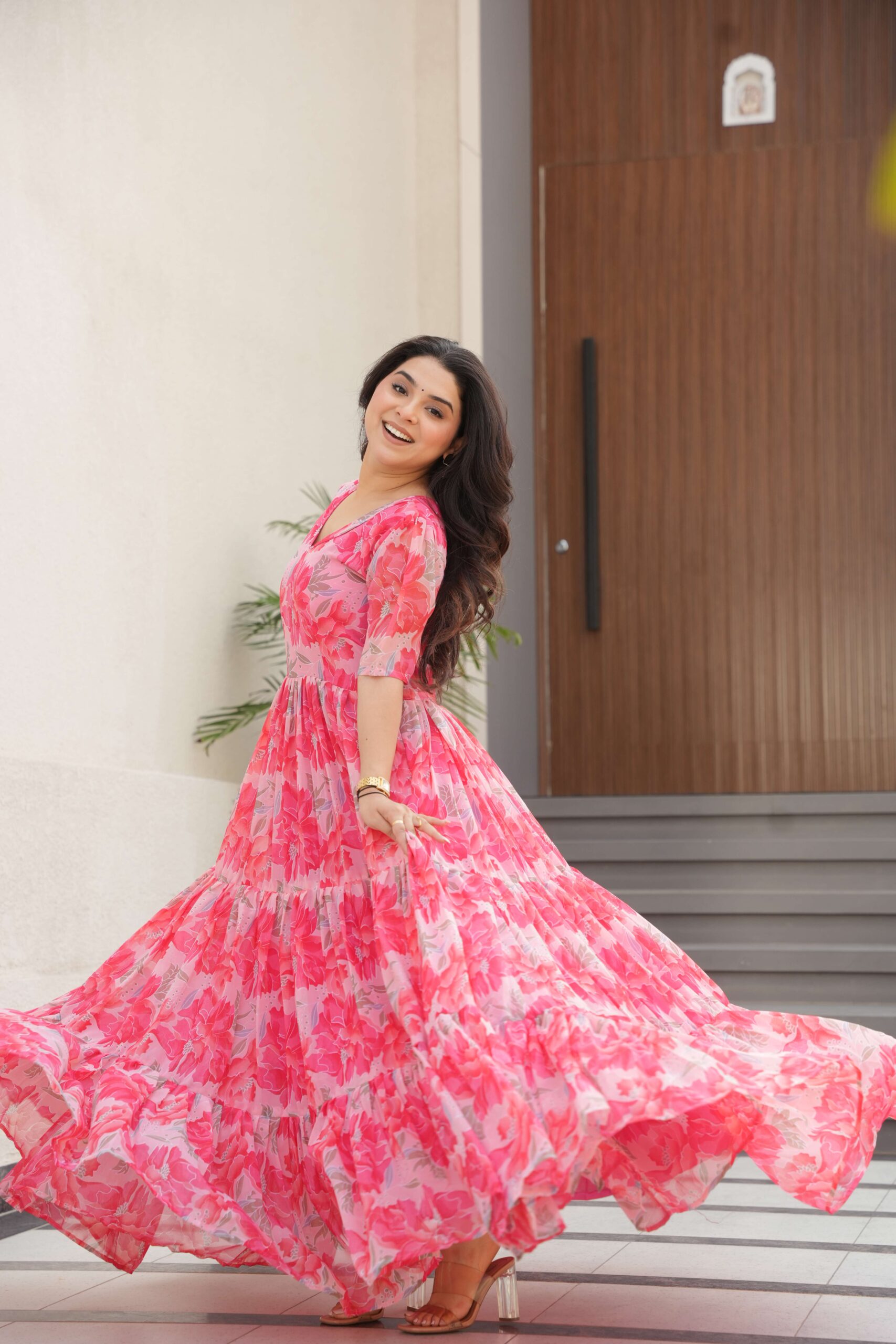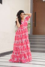 This Premium Readymade Gown is crafted for women who love elegance and effortless style. Made from lightweight faux georgette fabric with all-over prints, it offers a full 12-meter flair that creates graceful movement with every step.