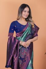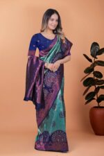 Peacock Aura Banarasi Silk Saree ? Teal Green & Royal Purple with Zari Pallu