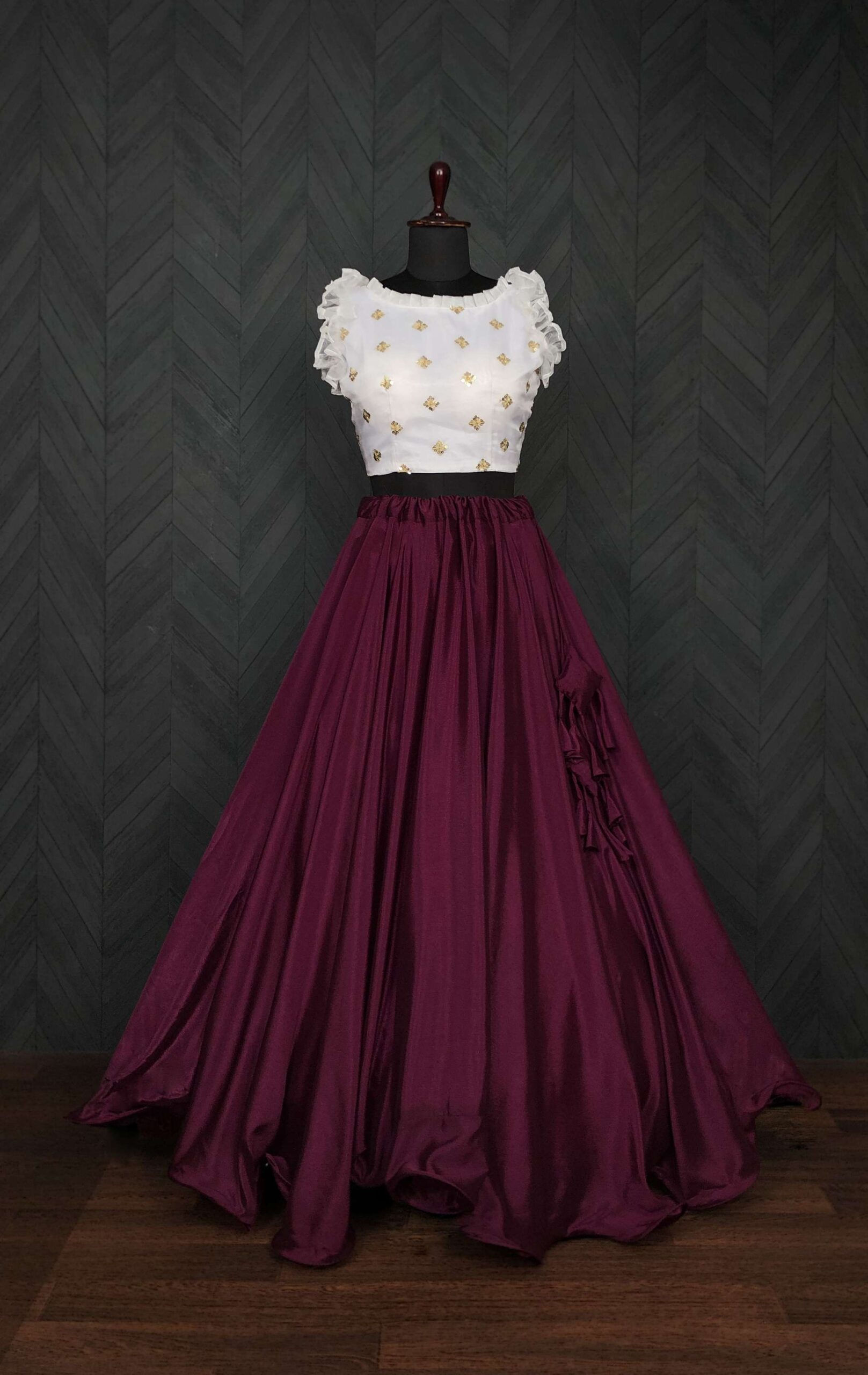 This lightweight set includes lehenga and blouse only (no dupatta), making it a chic choice for modern women who love minimal yet festive attire. Available in four vibrant colour options, this outfit is ideal for Navratri nights, sangeet parties, festive gatherings, and wedding celebrations.