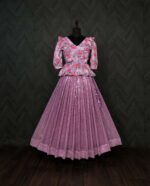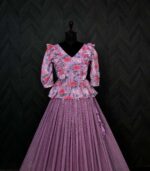 Step into elegance with this premium designer readymade lehenga choli set, a perfect fusion of rich embroidery and chic floral charm.