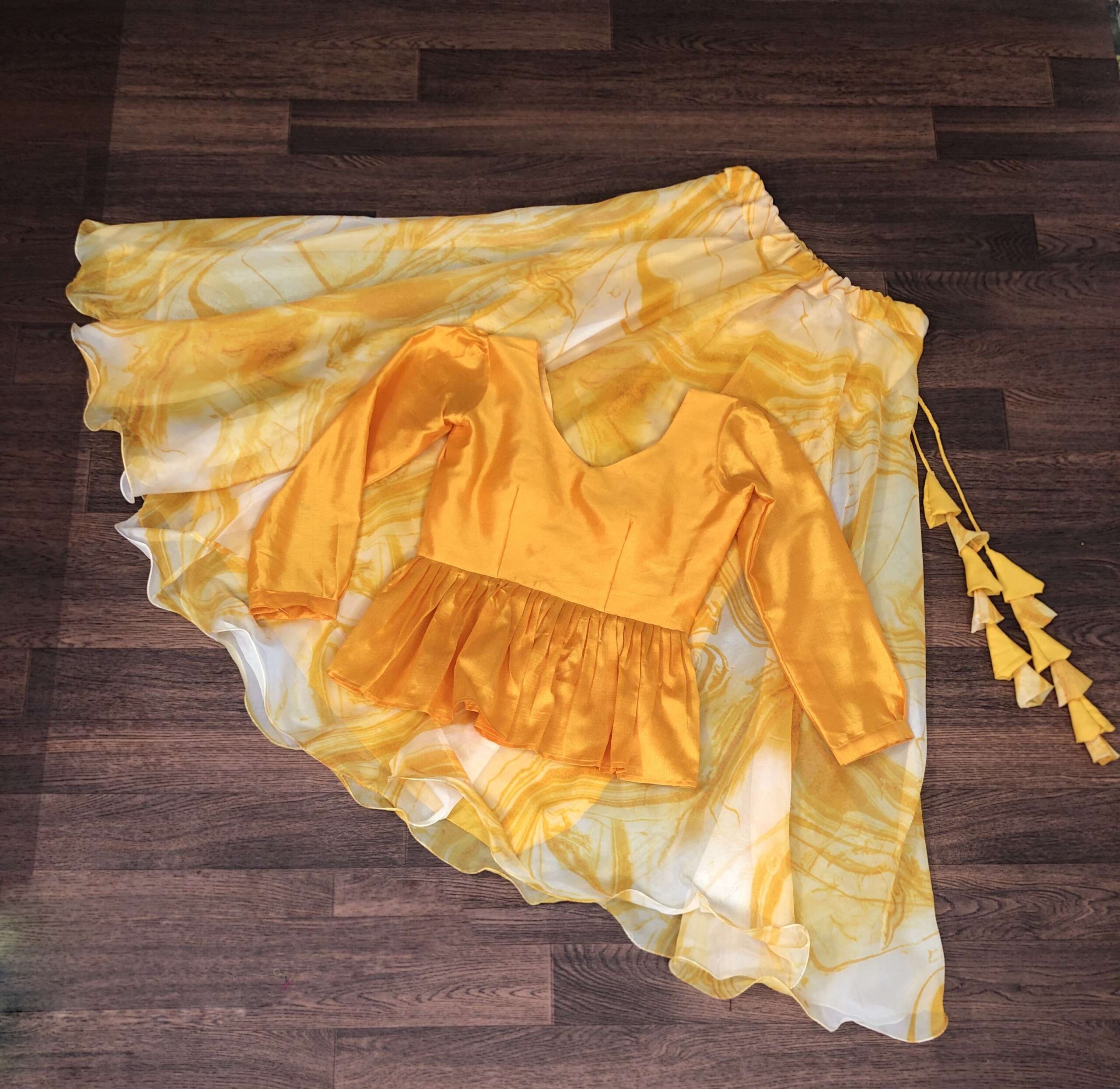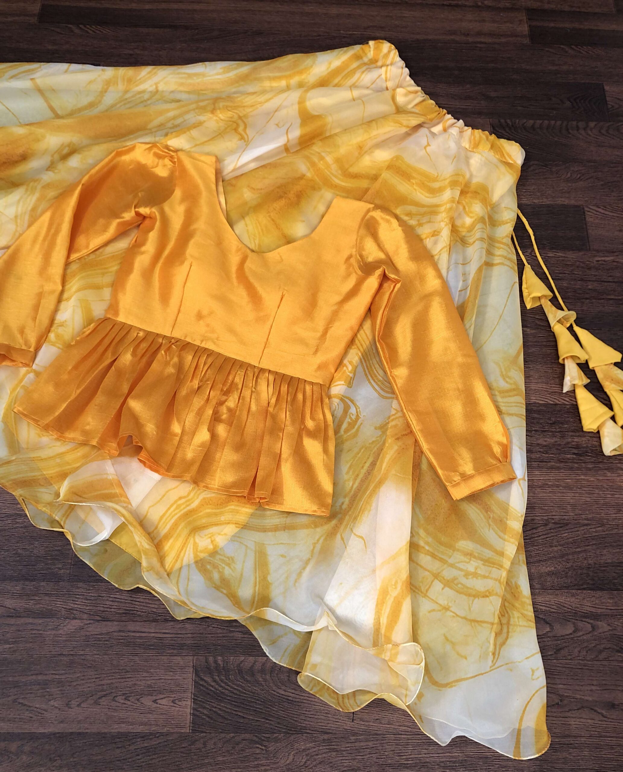 Bring a touch of elegance to your festive wardrobe with this premium designer readymade lehenga choli set. The lehenga is crafted from soft organza fabric with rich digital print, offering a stylish and graceful look. With its 7-meter flair, full cotton lining, and wire-picco stitched finish, it flows beautifully while ensuring comfort. A chain closure with dori latkan detail adds a traditional touch.