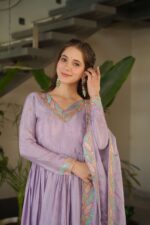 This Premium Readymade Gown & Dupatta Set combines classic Indian craftsmanship with modern design. Made from Chinnon fabric, the gown is adorned with sequins and multi-thread embroidery, offering a luxurious and graceful look.