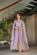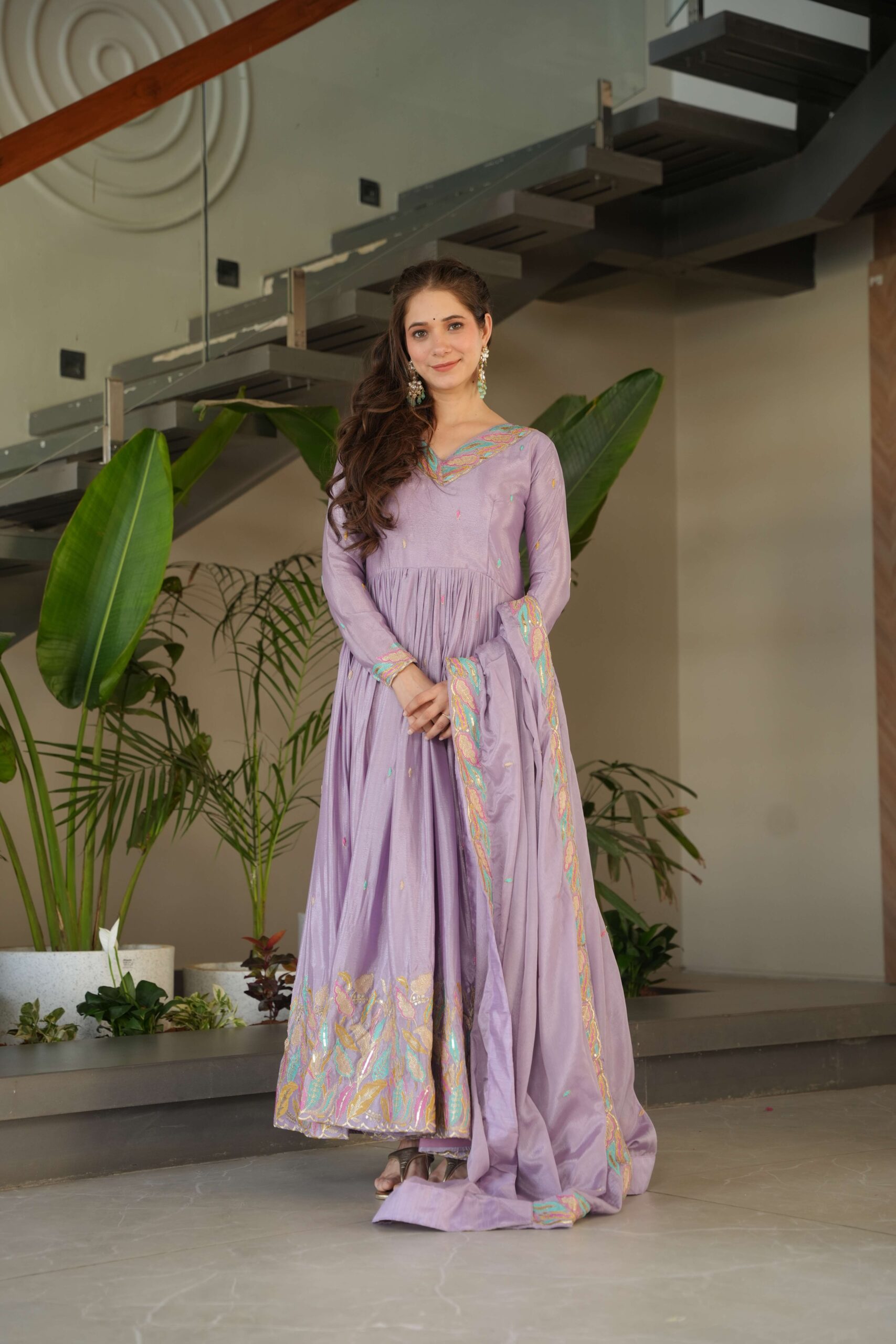 Purple Premium Chinnon Gown with Dupatta ? Sequins & Multi-Thread Embroidered Work