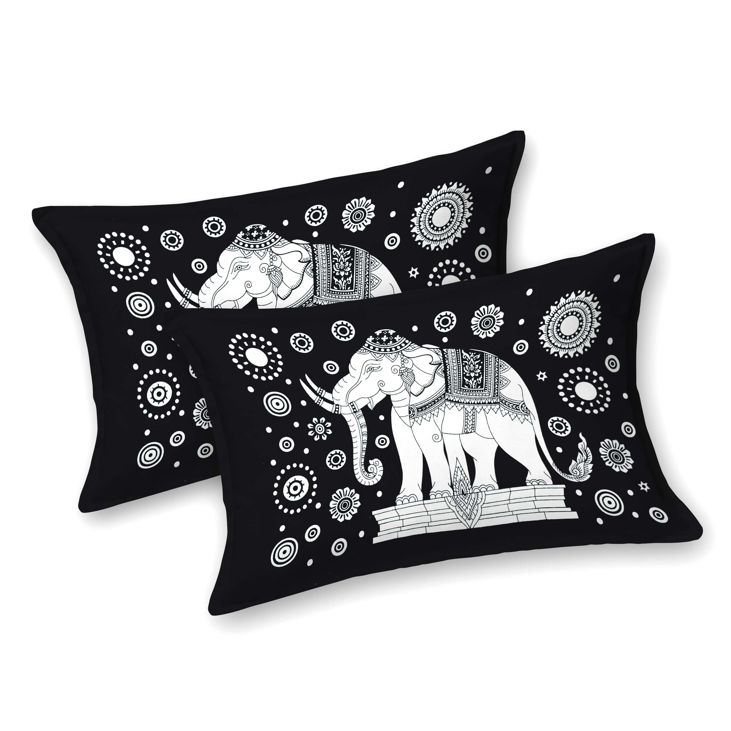 Rajasthani Elephant Printed Cotton Double Bedsheet With Two Pillow Covers