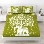 Rajasthani Elephant Printed Cotton Double Bedsheet With Two Pillow Covers