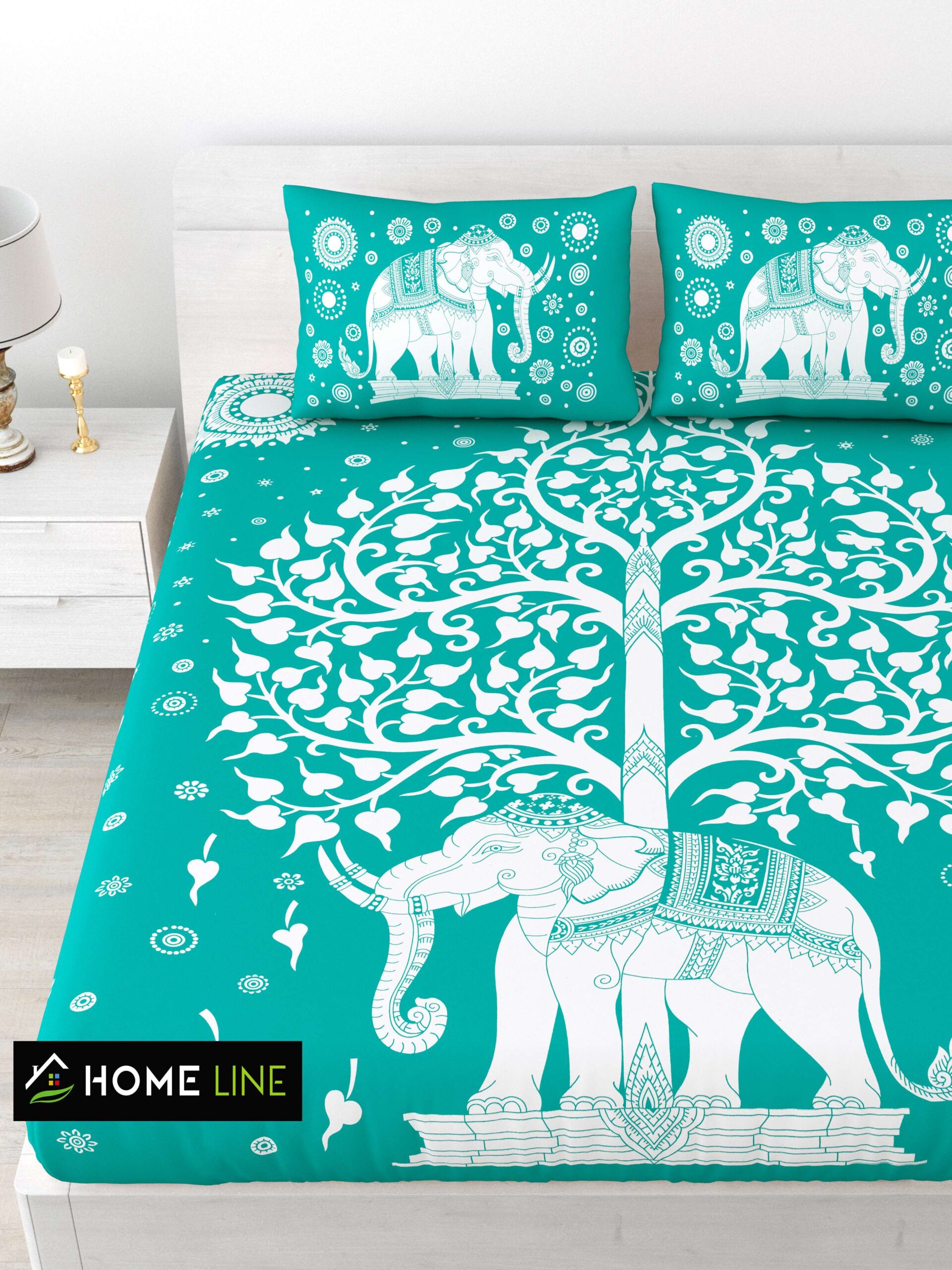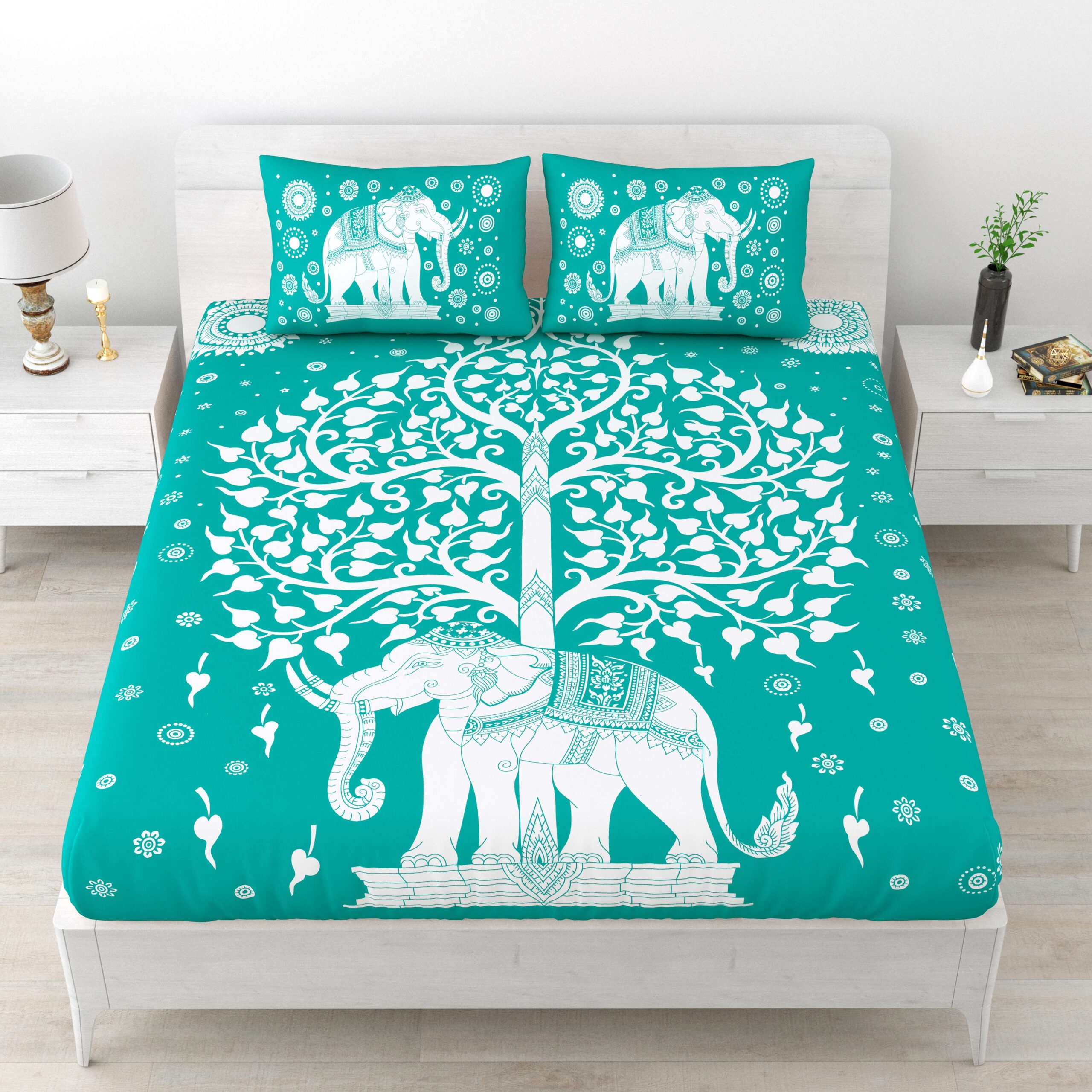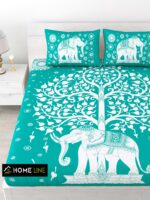 Rajasthani Elephant Printed Cotton Double Bedsheet With Two Pillow Covers