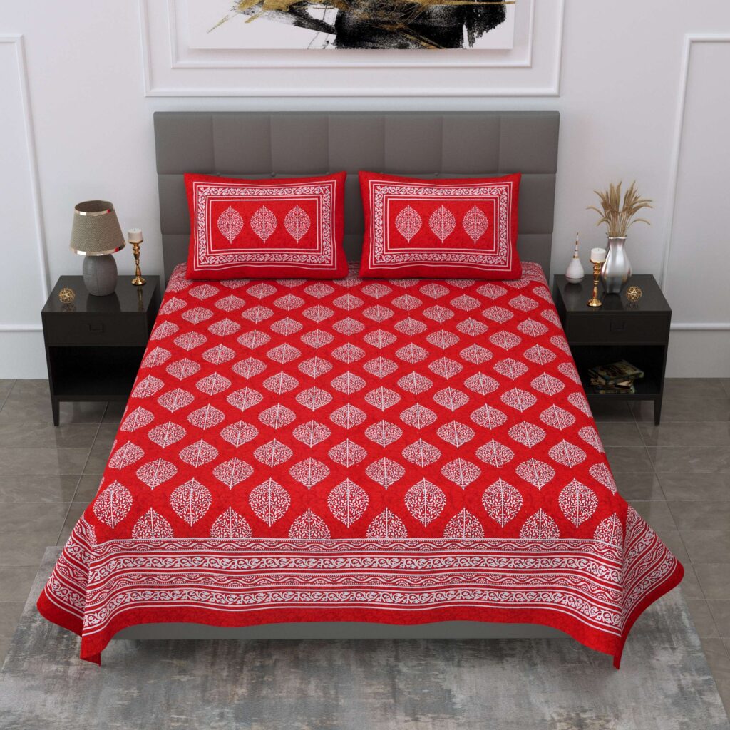 Rajasthani Traditionally Printed Cotton Doublebed Bedsheet With Pack of 2 Pillow Covers