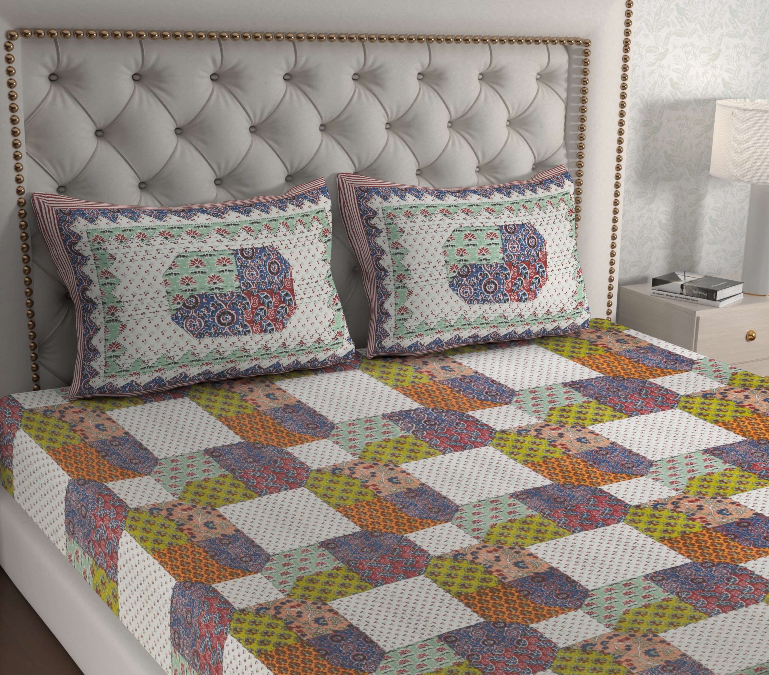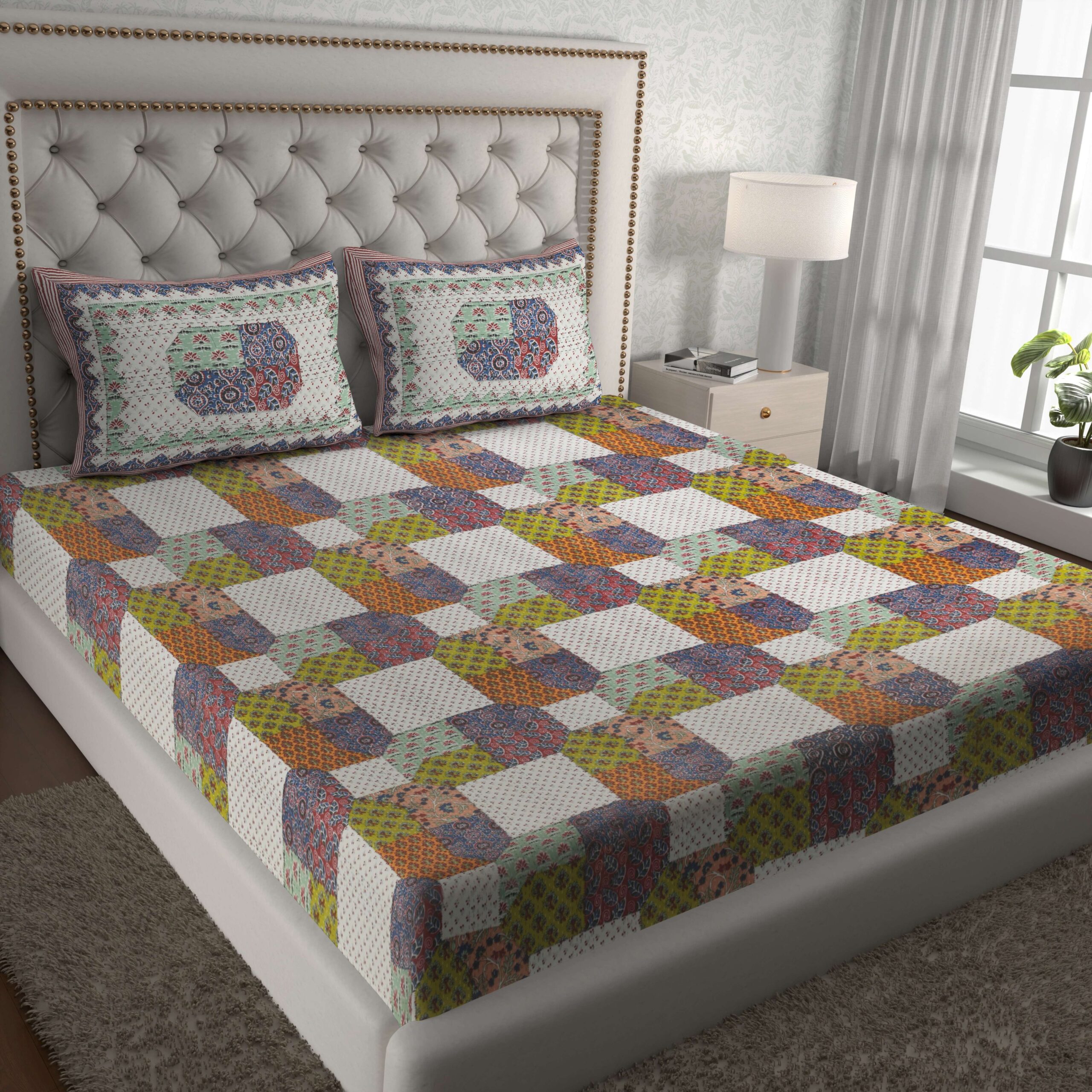 Bring home the essence of Rajasthan with this beautifully crafted Rajasthani Traditionally Printed Cotton Double Bed Bedsheet. Made from 100% pure cotton, this bedsheet offers unmatched comfort and breathability for all seasons. The vibrant traditional prints and intricate motifs reflect the rich heritage of Rajasthani artistry, adding a royal touch to your bedroom décor.
