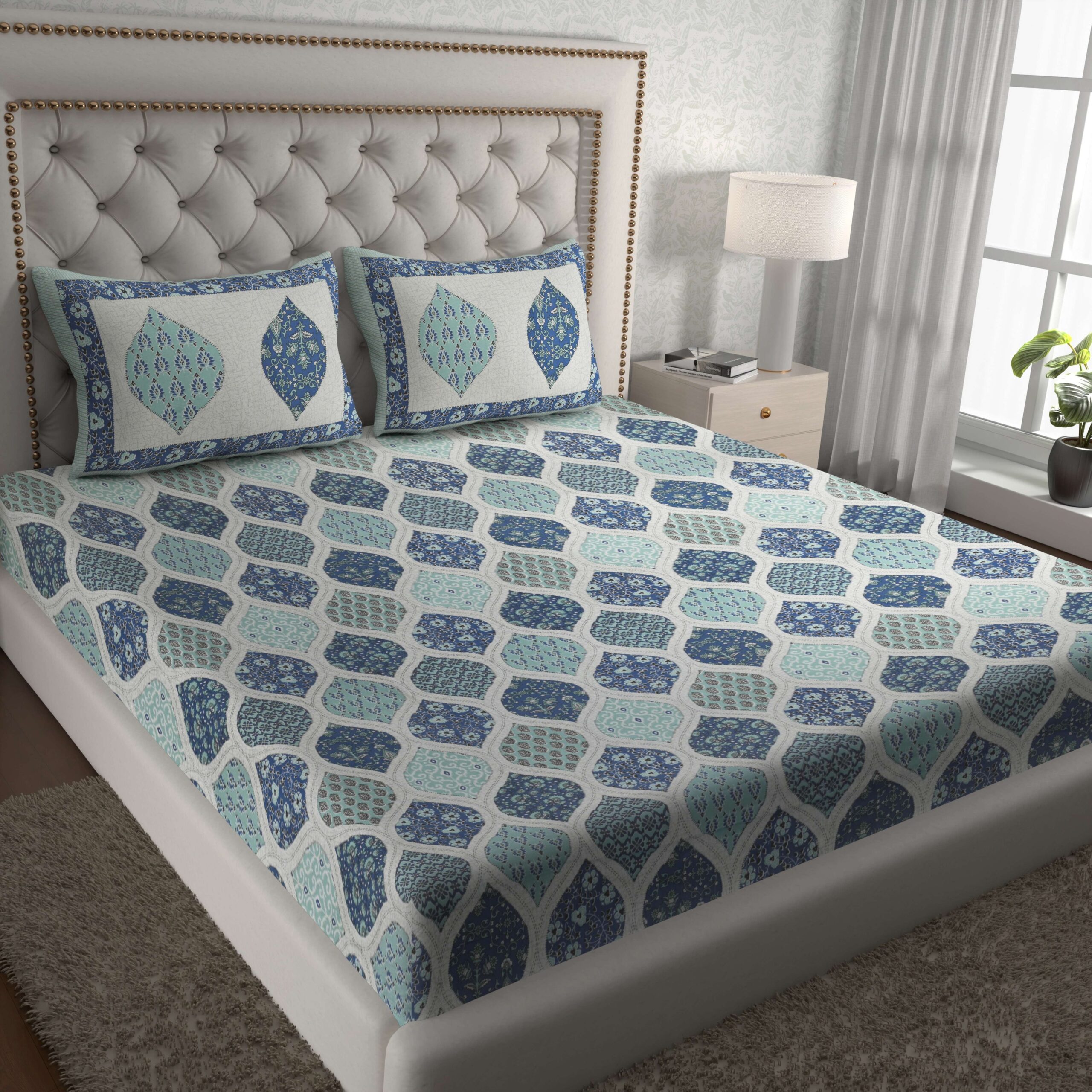 Rajasthani Traditionally Printed Cotton Doublebed Bedsheet With Pack of 2 Pillow Covers